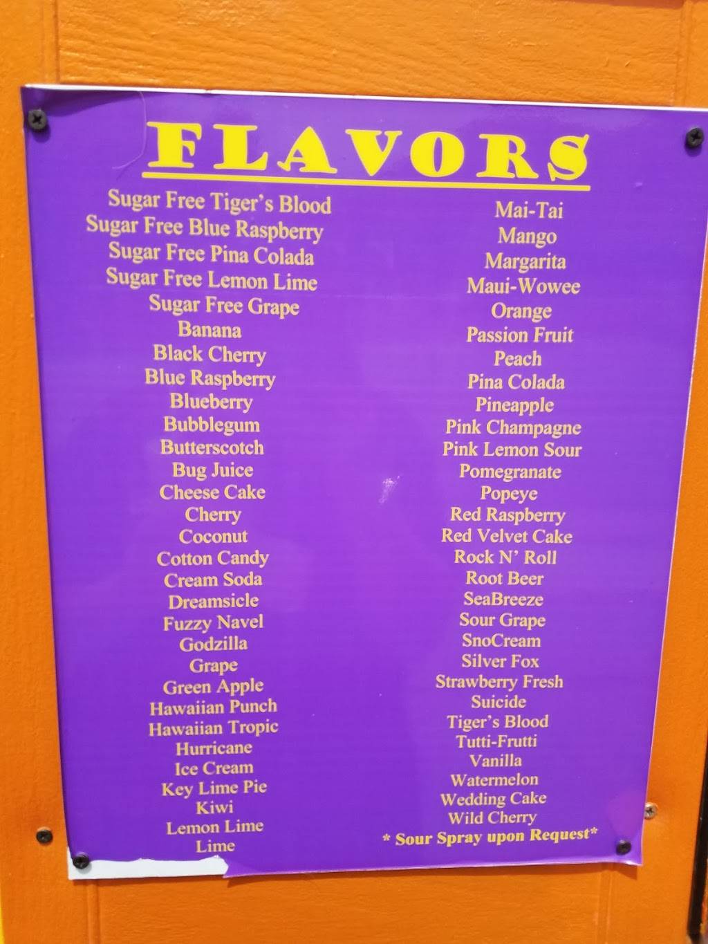 My favorite place for summer snow cones i do wish it was all yr round hehehe ? i love that there ice is always so good never clumpy there flavors r the best! Highly recommend