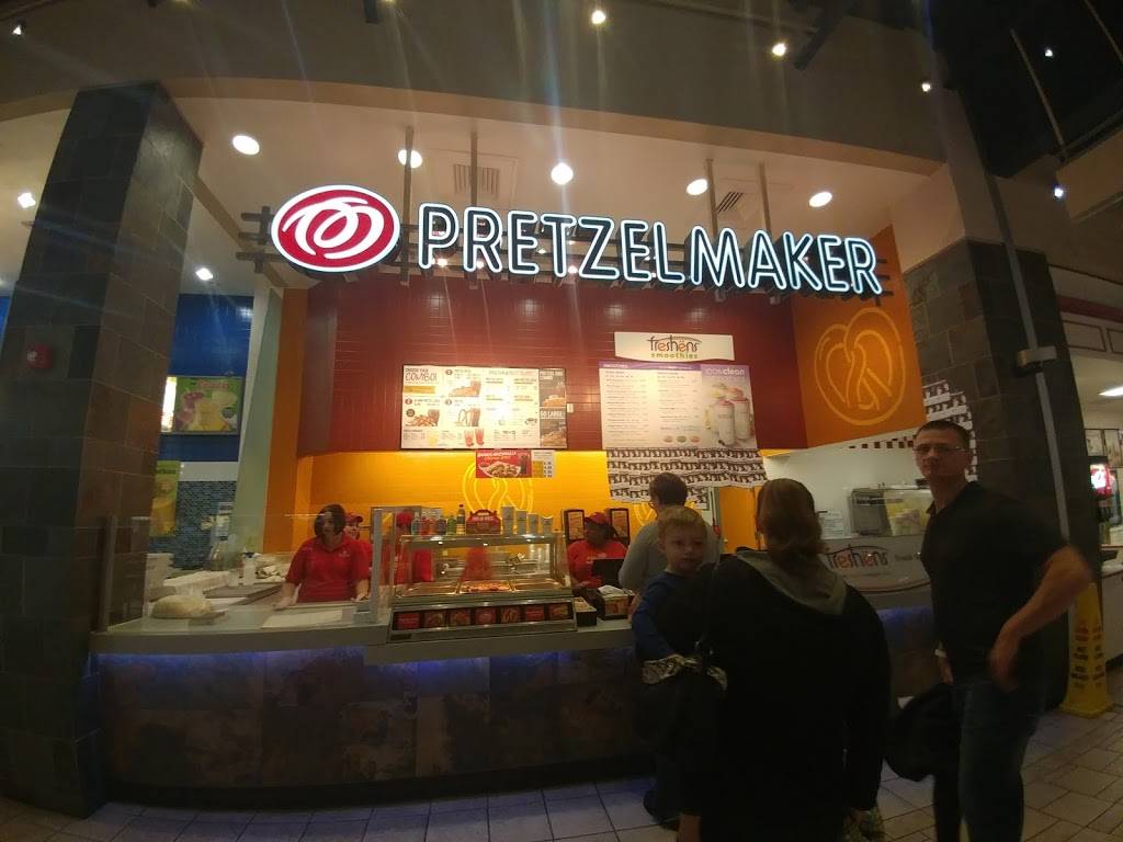 The Pretzelmaker at the Layton Hills Mall tonight was semi busy. The manager was there tonight helping the cashier load in my birthday coupon, which is a free small pretzel bites with a regular drink. She upsold me a large drink for $0.10 more. We usually get the pretzel bites over the actual pretzels because the bites are softer. They over-cook the actual pretzels. I think this is sad because you probably get more food in the actual pretzel than the bites in a cup. I can't speak to the smoothies because I've only ever had their samples and never actually had a full smoothie. I'm on their email discount Club and I never have gotten the coupon for the smoothies. I would definitely recommend getting on the email discount Club because their prices are so high, you really need to have the discount! But the pretzels are so good and I can't seem to replicated at home. My son loves this place. So if you want to have pretzels this is the place to go.