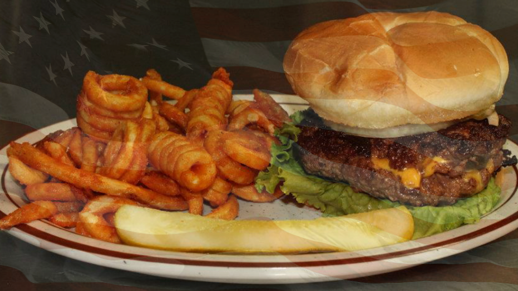Tired Wayward traveler All American food by All-American waitresses surrounded by All American family epicly homestyle