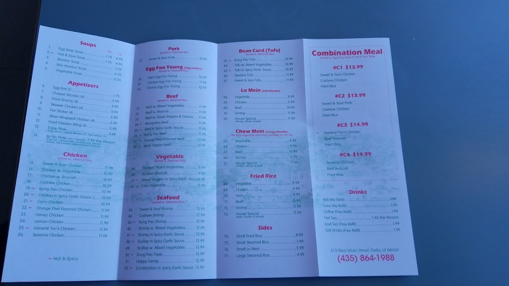 The menu is Chinese, which is a great addition to Delta and should do pretty well with no competition and a great location. I had sesame chicken and my wife had sweet and sour pork. Each was very good and the flavor was up there with any other restaurant. Lo mein was made with flat noodles and was a bit sticky, which is something this white person is not used to. But again, it tasted good.