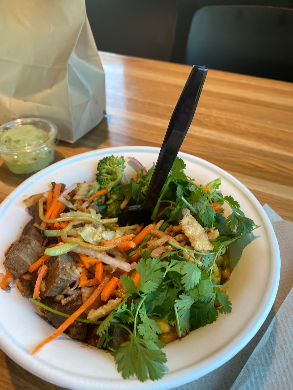 Had a great teriyaki chicken bowl with noodles at this new location. The service was quick and friendly. The meat was tasty. The toppings are my favorite, especially the carrots. They could have been a bit more generous with the toppings (it had just a couple little pieces of cilantro) but overall a great meal!