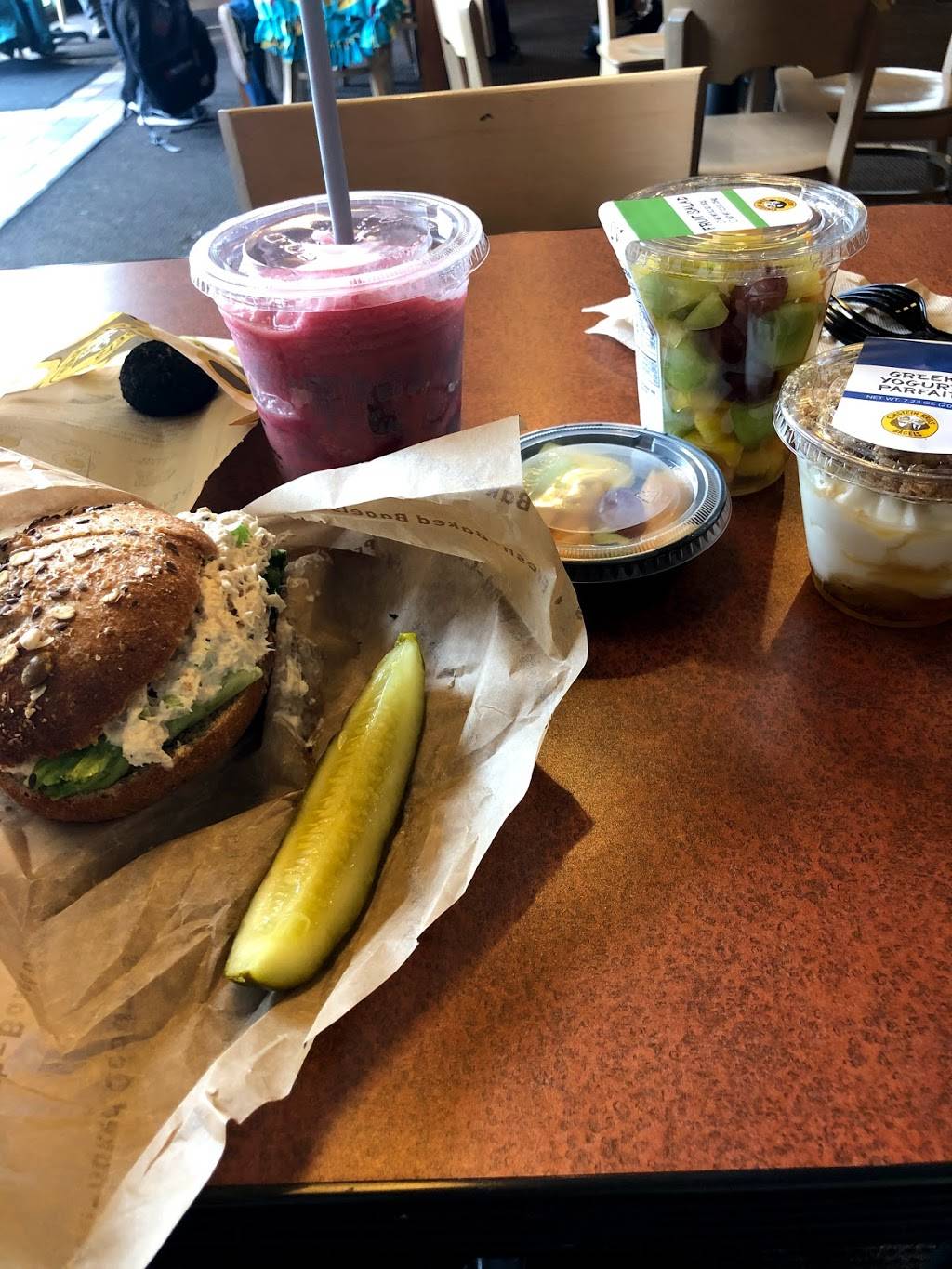 I come to Einstein Bros Bagels often, especially this location, because it's conveniently located near where I live in downtown. The place looks ghetto from the outside (front and back), as it shares a shady parking lot with Dominos Pizza. But inside it's clean and cozy; definitely one of the smaller Einstein Bros Bagels compared to the ones on 1300 South and 3300 South.