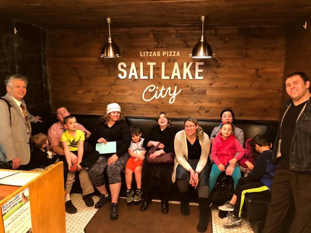 Love Litzas! Super cute and clean. Lots of tables. Service was great and quick. They have lots of different pizza sizes and options. We ordered 4 small pizzas for 5 people and shared and that was more than enough, we had left overs. Parking was a little tricky, but there was a lot going on in Salt Lake that night, so it was just busy.