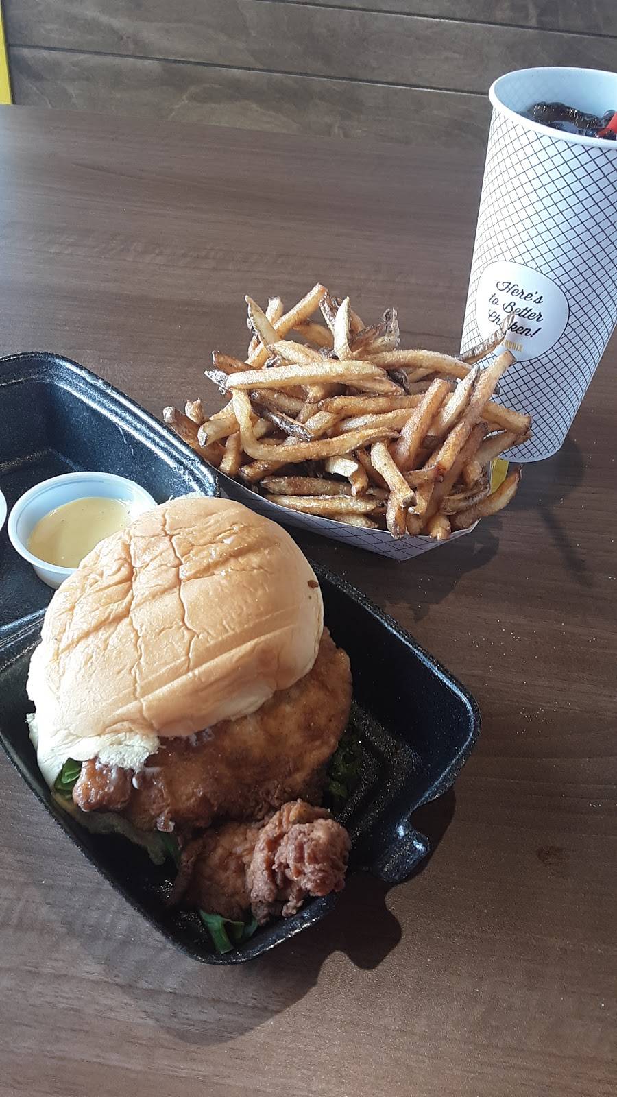 I loved this place! Employees are kind, place is clean, design is nice, and food was amazing. I tried the Buffalo Ranch sandwich, the Nashville hot sandwich, the Crispy Avocado sandwich, and Cajun and rosemary fries. The buffalo sauce was amazing, the avocado sandwich contained what appeared to be a full deep fried avocado (peeled and pitted) stuffed with cheese. The Nashville Hot was hotter than expected but still good. The rosemary fries were amazing with good flavor and the Cajun fries were spicier than most, also amazing. Would definitely recommend. I am definitely returning.