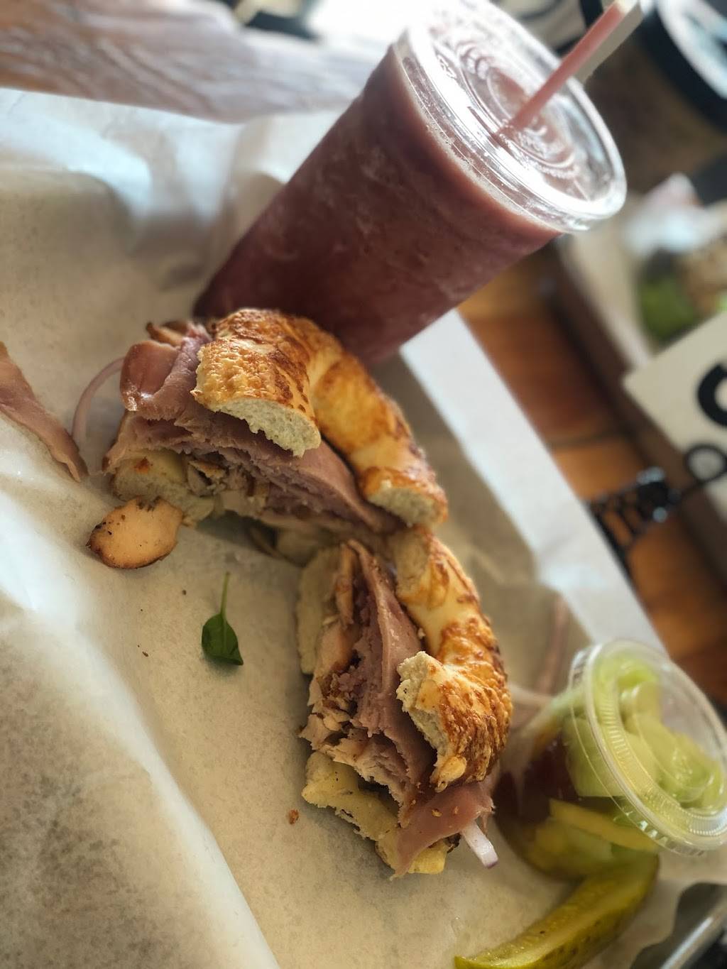 We stopped here on a Saturday morning and it was delicious! I got an egg, bacon and cheese sandwich on the pretzel bagel, and it was great! I also got a strawberry banana smoothie and it hit the spot. Definitely making it a point to stop here in the future when I'm in town!