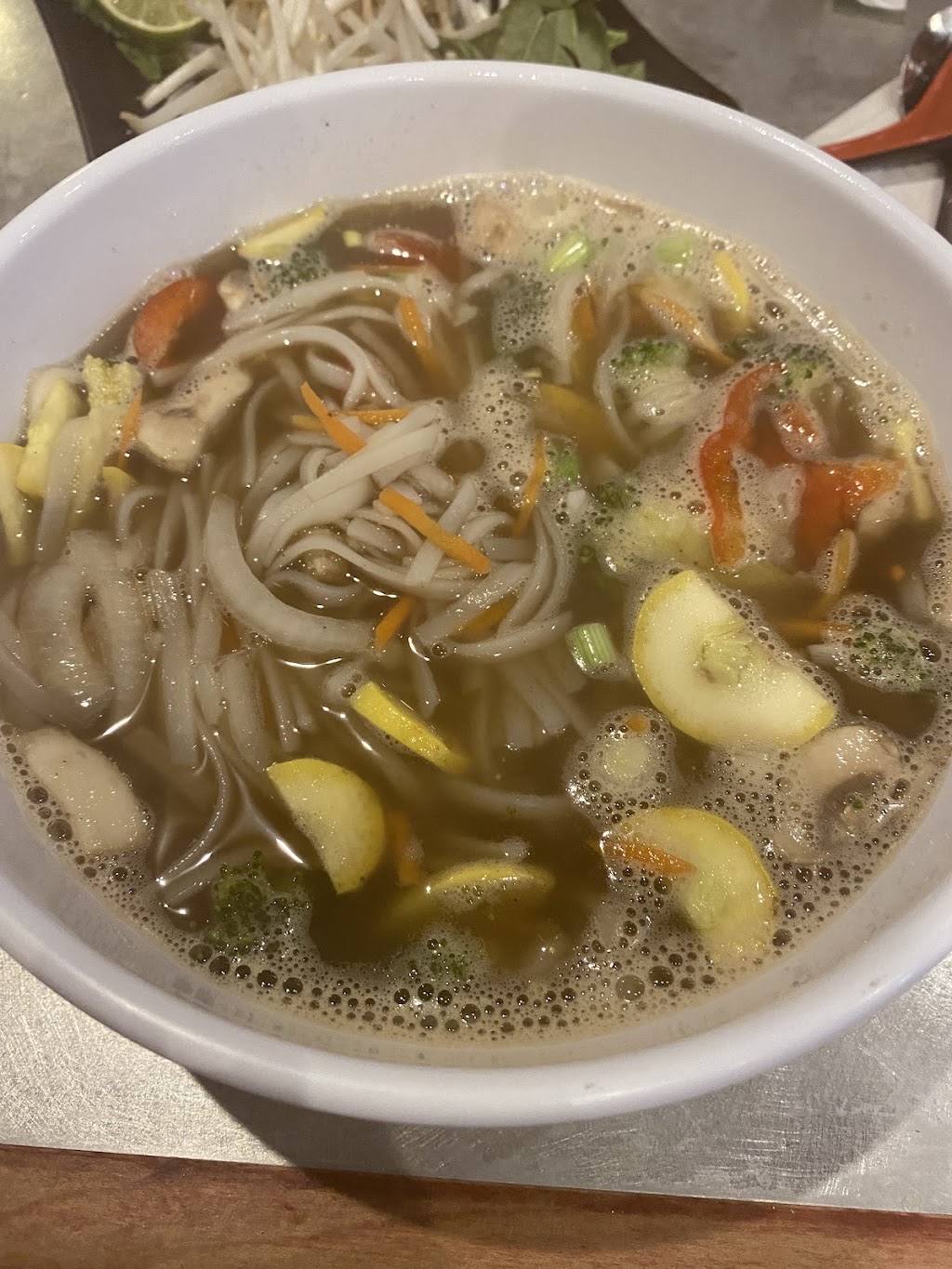 Clean and mellow environment. Food was delicious and the staff was friendly. Food was cooked to order and came quick! Great lunch spot or late lunch. People around seemed happy and satisfied with the food as was I! Loved the Pad Thai and coconut shrimp!