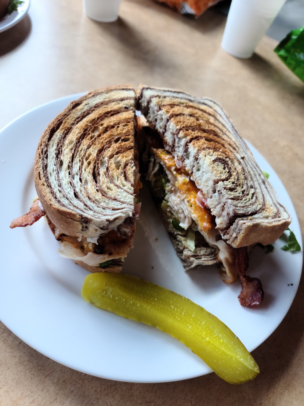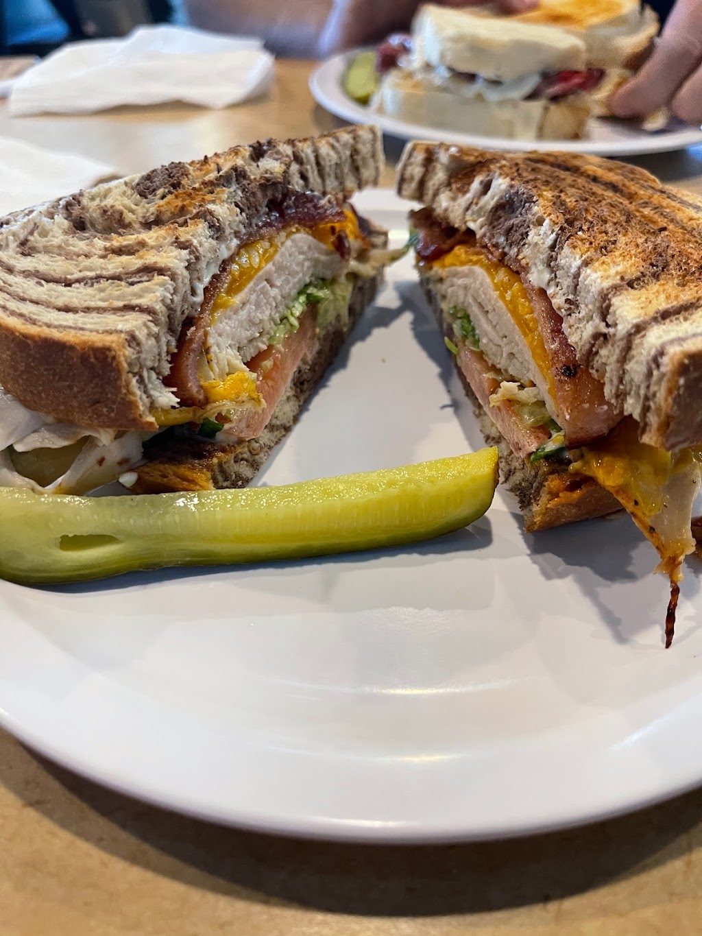 Lunch: good vibe, nice people. California burger and chicken sandwich we're good on homemade breads.