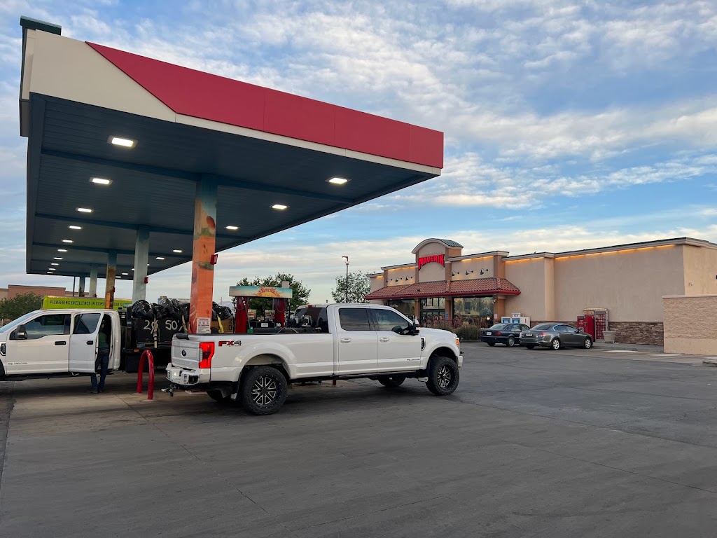 Just left a Pilot Travel station because we couldn’t find a way in with a travel trailer in tow. Go further down the highway and find this Maverick. There are signs on how to enter with an RV and pumps just for anyone towing. Easy to navigate the parking area that also has a dump station. Food and drink selection were excellent with fresh items equaling the snack items. Bathrooms were clean.