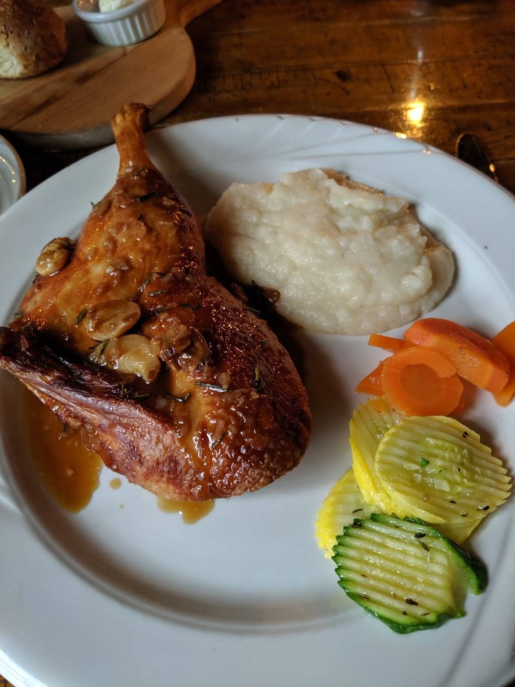 A really pleasant experience. Good food, good service in a cozy, quaint atmosphere. Excellent scrod cakes. Good steaks, well prepared. Special treat while you wait for your appetizer, cranberry fritters with maple butter.