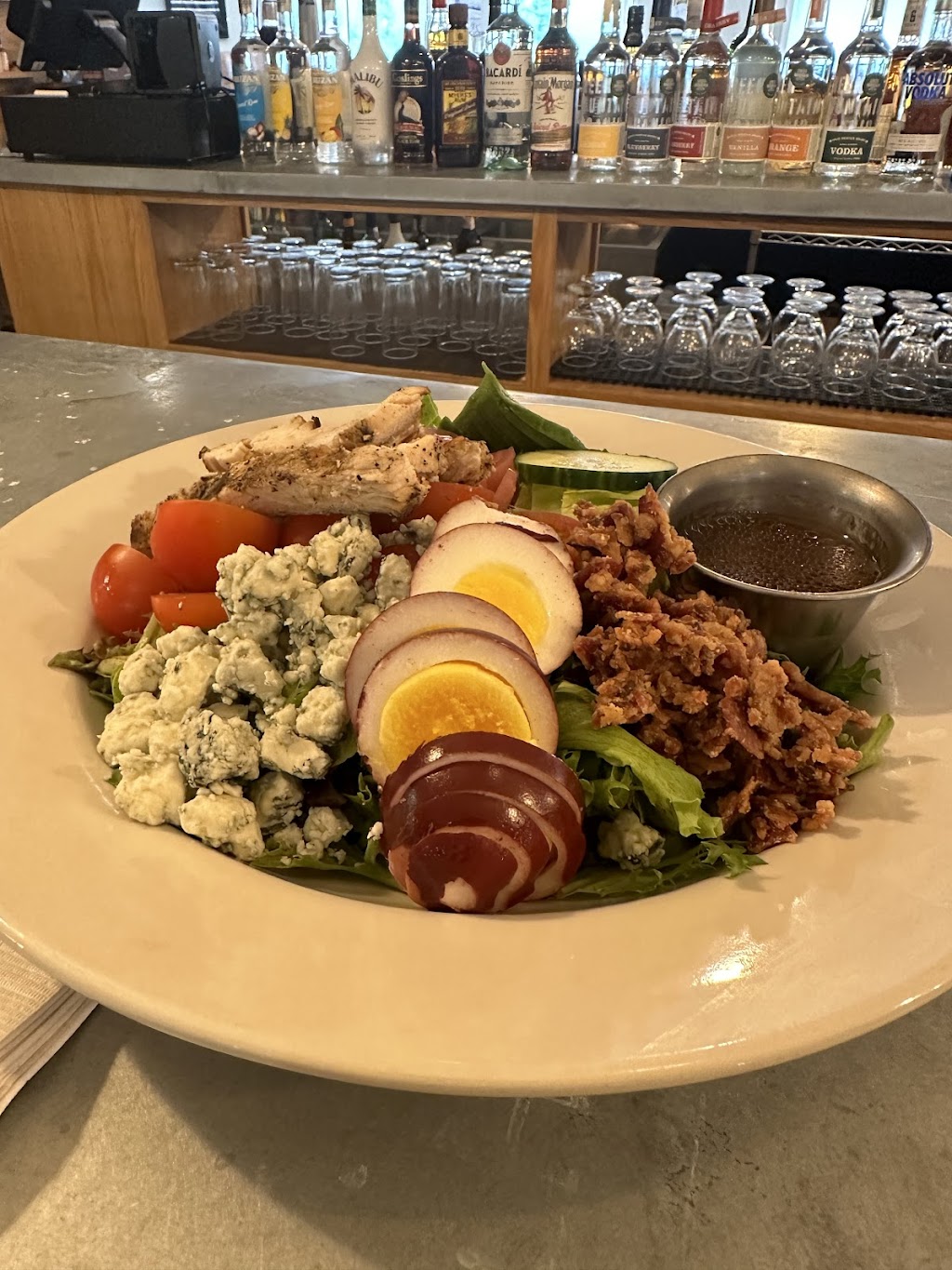 The owners/managers are super nice but some of the waiting staff were too slow or overwhelmed! The Cob Salad was very fresh and tasty and good portion, the appetizers (nachos, wings , Brussels, fried cauliflower) were ok