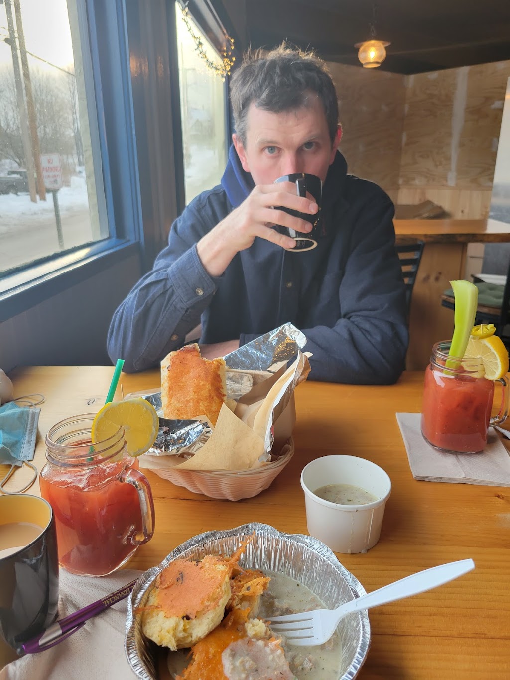 Wit & Grit is a great addition to the Central Vermont breakfast restaurant scene. My wife and I had the biscuits, sausage, and gravy and the breakfast burrito, both of which were very tasty and were definitely well crafted. The space is large enough that everybody can be well spaced so no real worries regarding Covid. They are still working out the employee thing so you may have to wait a bit to sit down if it's crowded or to get your coffee refill but the owners have a great attitude and make every effort to keep you happy. I'm hoping they can transition from plastic utensils and take-out containers to flatware and plates soon since I hate to produce any more trash than I need to. But as a past restaurant owner myself, I understand how overwhelming the first few months of running a restaurant can be and they are off to a great start, with good food, positive attitudes, and a nice space. So give them some love and head over to Wit & Grit and try them out!