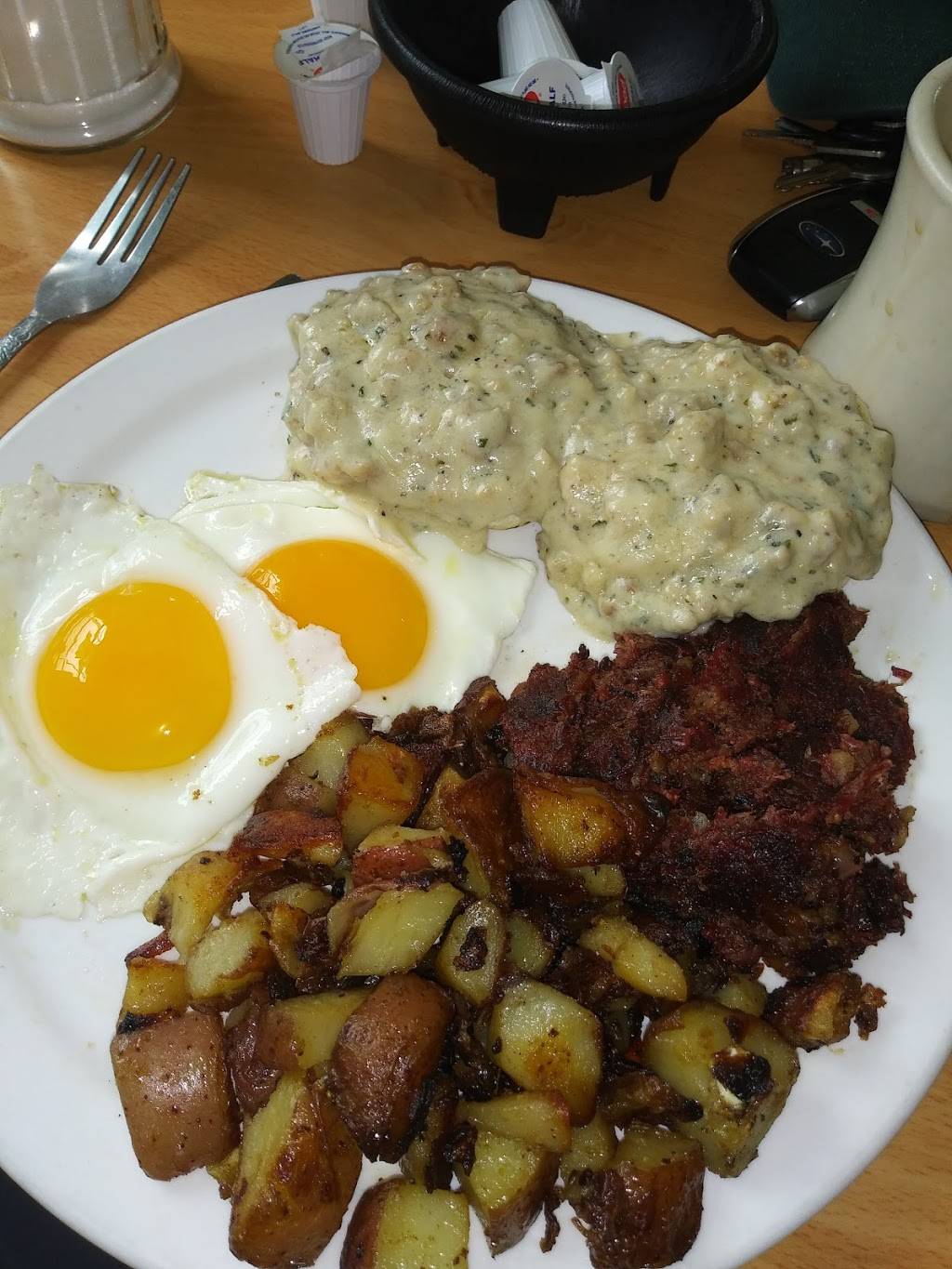 We tried the eggs in various forms, home fries, coffee, corned beef hash, biscuits and sausage gravy. Every thing was as good as can be. Very flavorful and pleasantly spiced without being too greasy.