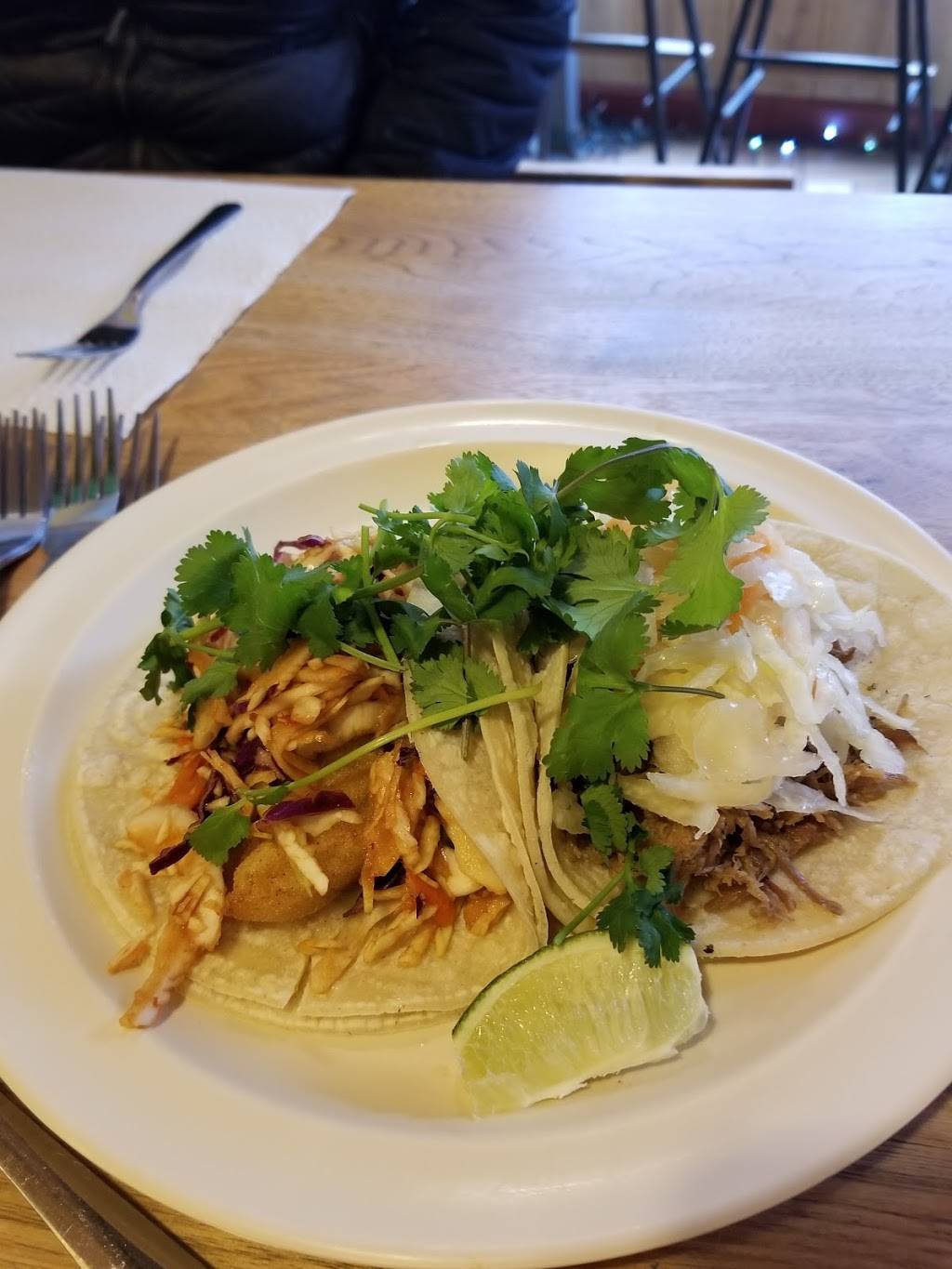 Cramped space, bench seating at shared tables. Loud, locally-hip crowd. Small bar with drink specials. Slow service, short staffed, but friendly and working hard... the food was pretty great. Cubano sandwich was fantastic! On house made bread. Everyone enjoyed their food, maybe slightly more for the wait, hunger being the best spice. No parking... local clue; park behind city hall and fire department ;) Easily visible from the street. I'd give 3.5 stars if possible... not quite 4. Not super keen on the dog in the restaurant. Pretty sure that's not cool with code... Overall, the nonchalant attitude, rough presentation, and delicious eats make a reasonably authentic experience. Worth a visit for sure, just don't go if you're already hangry.