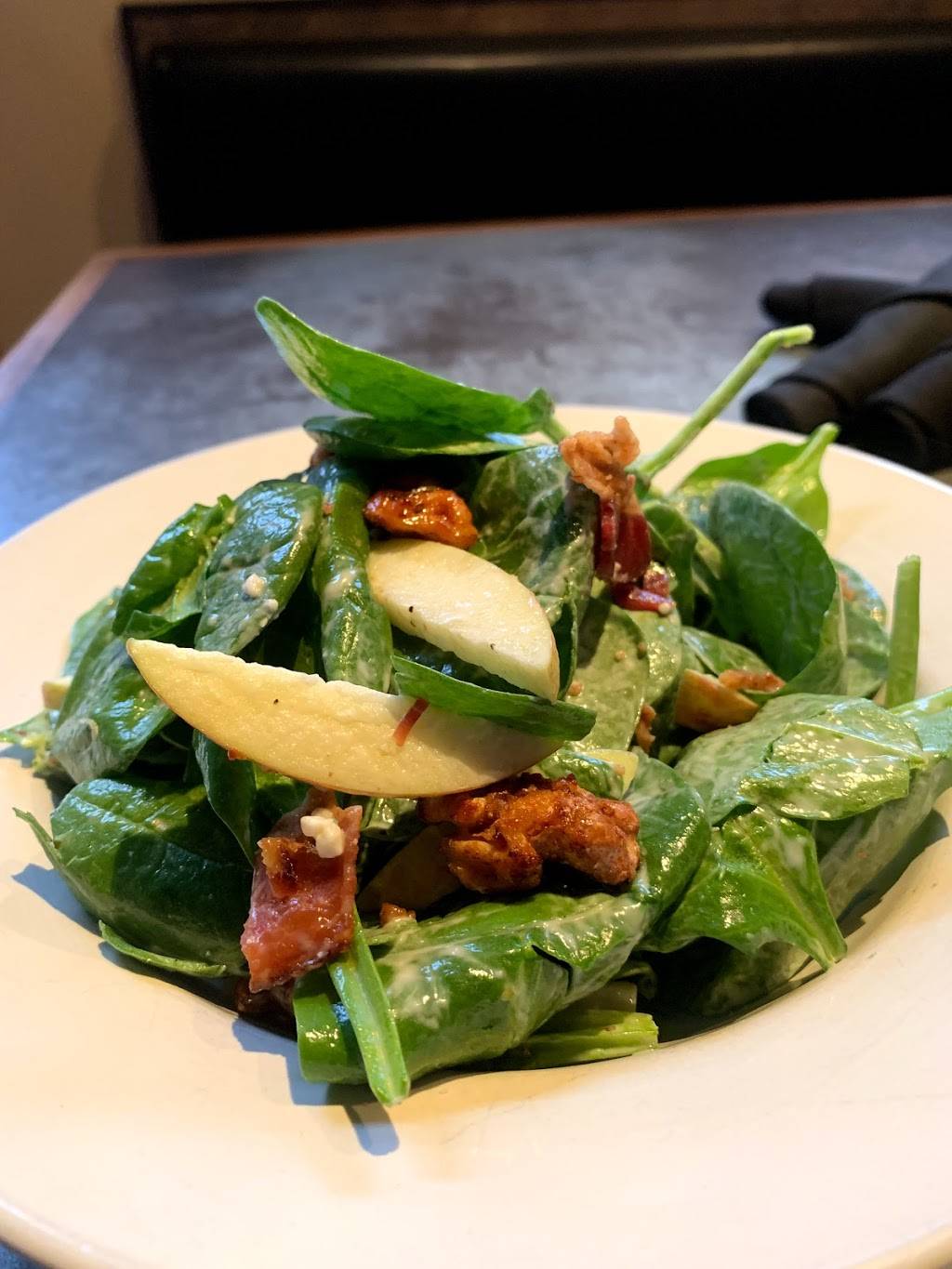 Split calamari, spinach salad and a excellent pizza with sweet sausage, broccoli and truffle ricotta with my husband. Excellent! Nice ambiance.