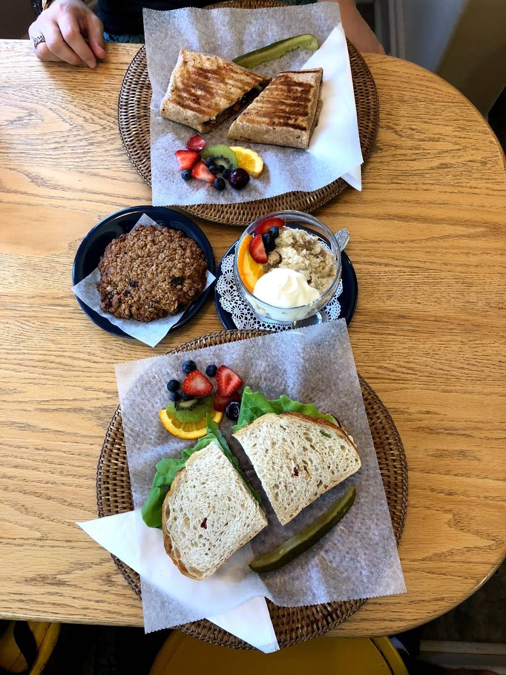 Turkey sandwich was moist and delicious. Pomegranit soda was sweet and biting. Very nice unrushed, clean atmosphere made for a very pleasant lunch. Employees made for an untrusted stay. They were pleasant. Will be back. PS... Wife had deliciously tasting coffee