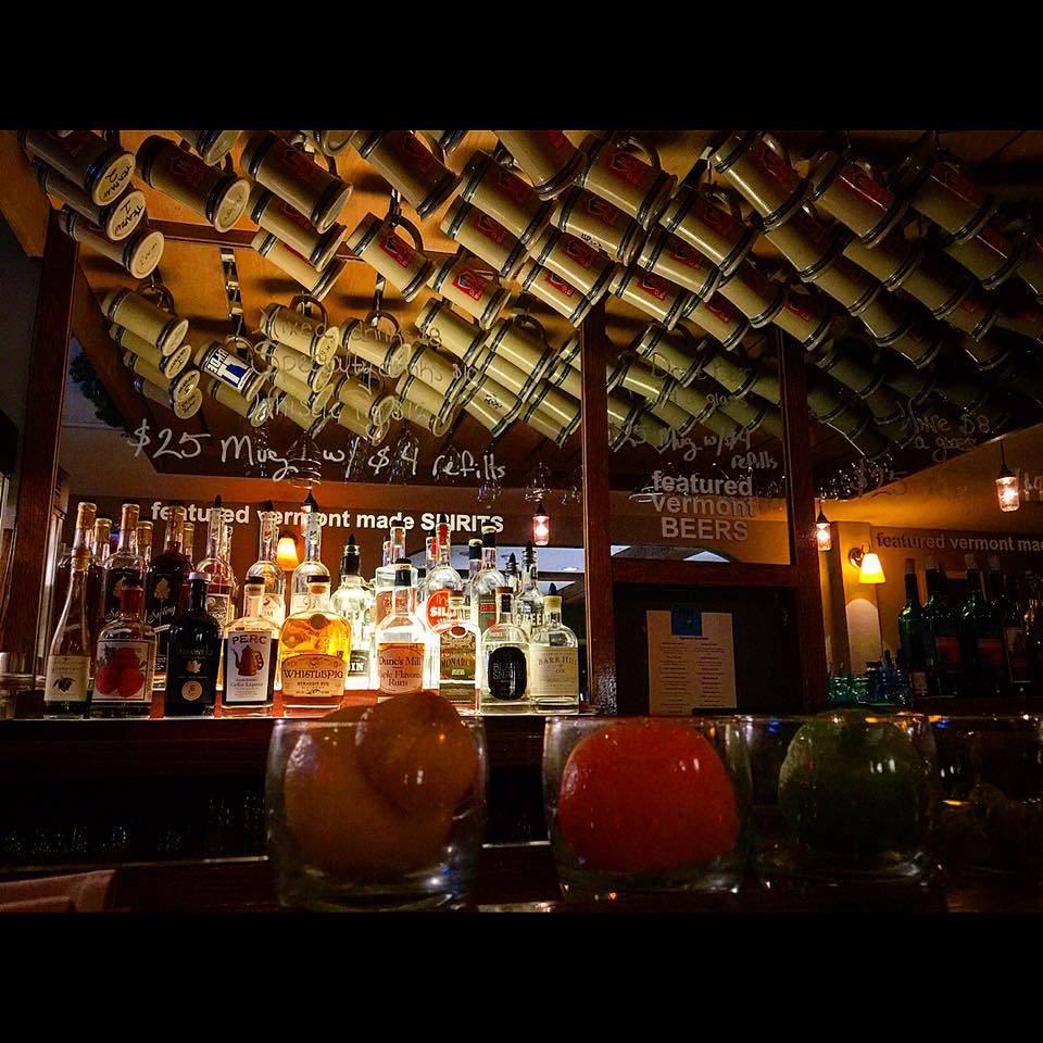 we had been by here before and it never looked too interesting, it is inside one or the magic mountain ski lodges.....but we thought we would give it a try, we were early for dinner on a week night between winter and summer seasons so it was not too busy, we ate at the bar, bartender was genial and informative, all the liquor, beer and wine come from vermont....it was burger night and the burger with a small salad was outstanding, wife had the salmon also excellent, drinks were good and conversations interesting....glad we decided to come here!!!!!