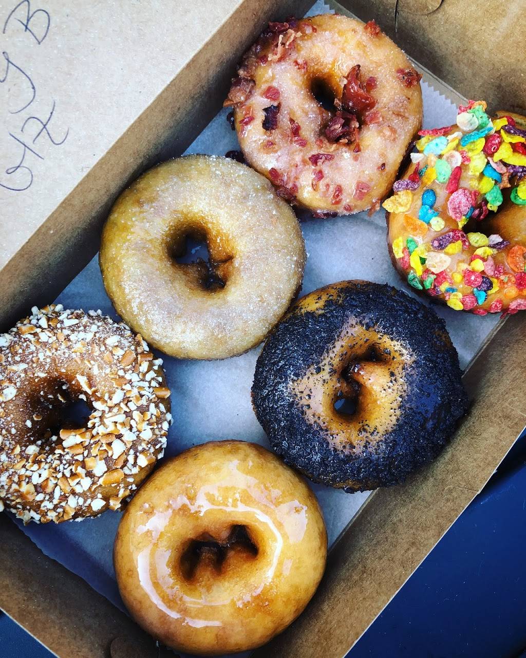 We ordered a half dozen of mixed variety. I appreciate that the donuts were labeled on the inside of the lid, left to right. The donuts were fluffy, light, and airy - the polar opposite of most fresh donuts. The actual donut flavor reminded me of funnel cakes. I'm assuming these are cake donuts because there was no yeasty flavor. I had the Mary Lee-Mon. Honestly I couldn't taste lemon except in one bite. I love that the glaze was more like a syrup that soaked in rather than a crackly powdered sugar glaze that crumbles and falls off. I would definitely return and try other varieties.
