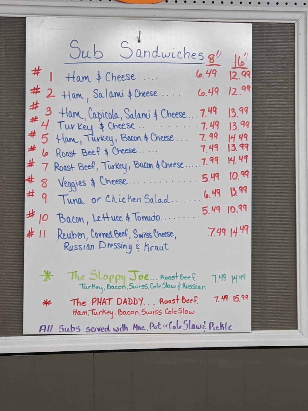 Sub was great and huge didn't care for macaroni salad but still enjoyed the sub very much ! Amazing prices for what you get .