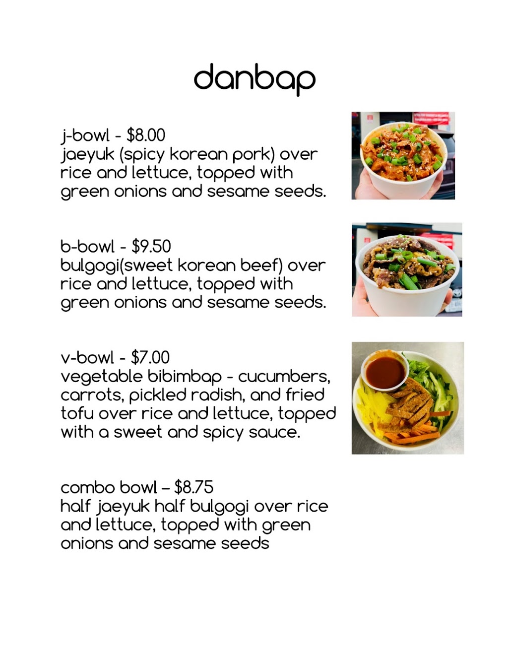 Delicious food, fast efficient service. The j-bowl was amazing, the savory spicy pork (not too spicy either!) paired with the lettuce adds a refreshing edge with the fluffy rice. 10/10 recommend