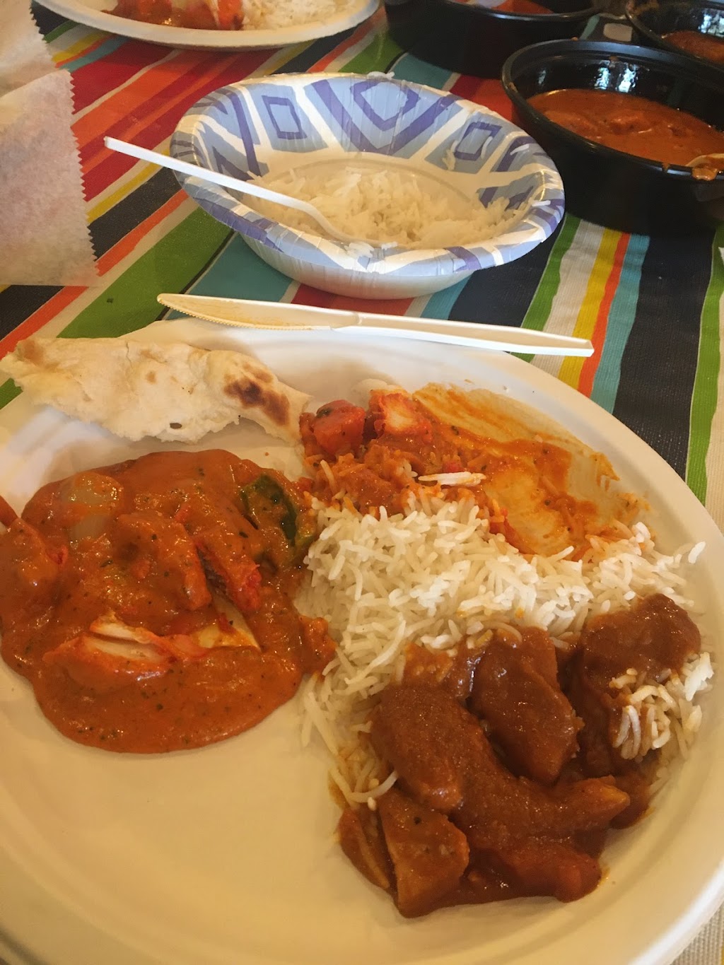My book club had lunch here and we enjoyed our lunch. The smoked eggplant was a favorite of several and I had Grandmother's secret curry with chicken. The level of spice can be chosen on most dishes so for people like me who can't take the heat this was a plus. Some like it 🔥 and they were pleased as well. Lunch was served on disposable dishes and I am guessing this is a pandemic precaution. Be aware of this. The acoustics were really good for conversation which was a plus for our group. Nice people, seems family run. Getting carry out there tomorrow as we are curry fans and want to try the lamb which people were raving about.