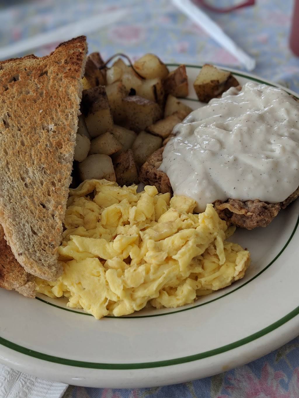 What a charming restaurant, right in the center of the historical district. We were passing through and stopped for brunch. So glad we did! The food was excellent. I ordered the chicken fried steak and eggs. The home fries were good. Well seasoned and browned just right. The steak was great! The gravy was nice and creamy. Our server was very sweet. We didn't feel rushed at all. She was happy to refill our coffee as we read the local paper. If you have to choose one restaurant in town, pick this one. :)