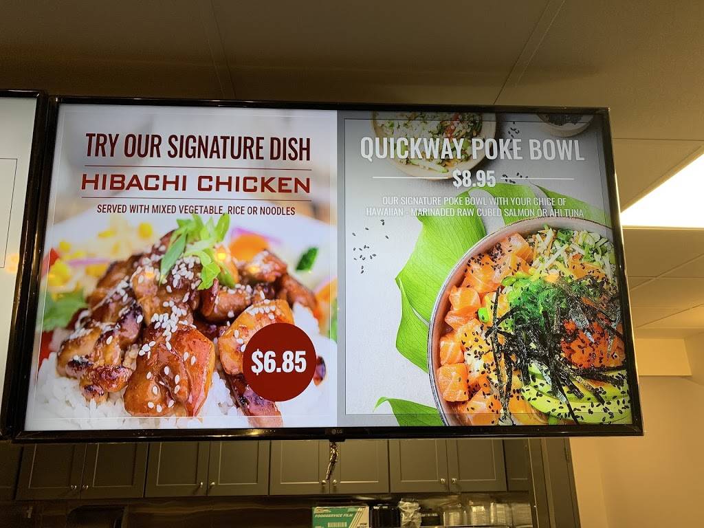 We were excited to try Quickway. I heard good things from some workmates who got lunch from there. We went to pick up a quick dinner. We had a Bento box with beef and shrimp, plus a hibachi chicken bowl. Portions were large, even for me. My wife and I had 2 dinners from the 2 dishes. Things were tasty, and the sauces added nice flavors. The dumplings and spring rolls were better than expected. The California roll wasn't special, but they aren't. We'll definitely be back. Pictures were played from the carry out we bought.