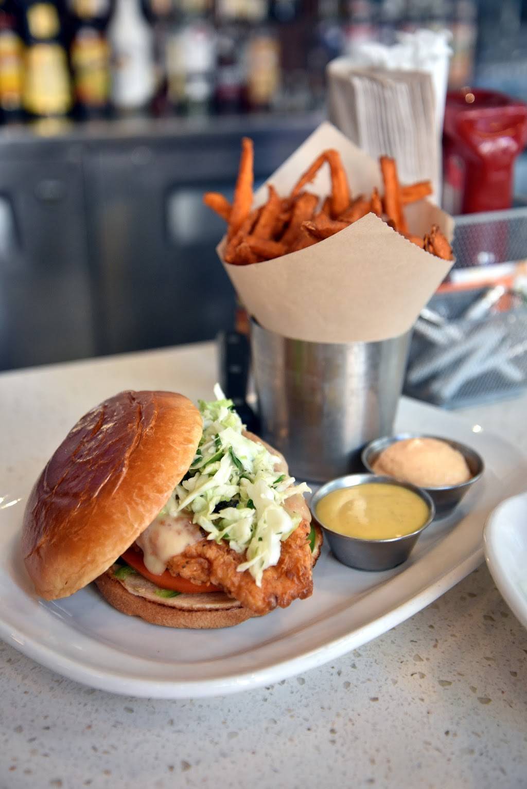 Very good food. Located on the inner street, perpendicular to Jackson's. Order the southern fried chicken burger, with honey Dijon mustard. Couple that with they're tender shoestring fries, and a shake of your choice. So tasty. Plus they have great bartenders tgat can make a variety of mixed drinks. The wait is usually about 5 minutes. Calm eating environment, good service. Make sure you specify how you want your burger cooked, default is pink throughout. Ice tea isn't the best. I would recommend, and I'll come back.