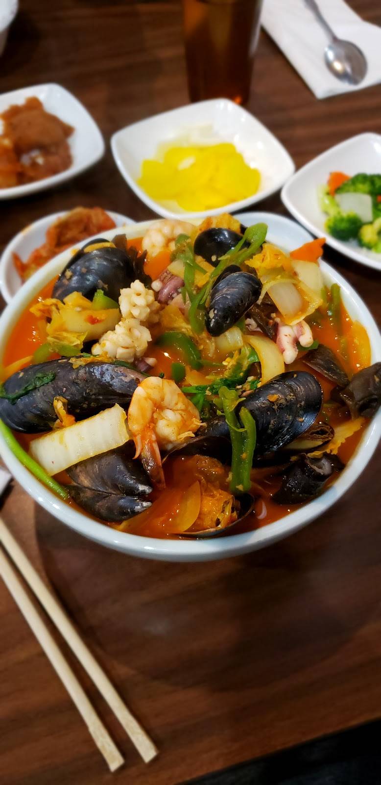 I was in the area and decided to try this restaurant. There is one in Springfield but different owners. The menu is similar. This restaurant in Centreville is much newer, cleaner, bigger and the staff is friendlier. There was a lot of Koreans eating there, a sign that the good is delicious. I ordered the small fried dumplings and was surprised by the presentation and the size. They were so good, so much better than the Springfield one that has deflated dumplings. I ordered my favorite spicy seafood noodle soup and it was good, as expected. I'm still thinking about the dumplings. Next time, I'm going to try the steamed dumpling and the beef short rib soup. With 20% tips, my bill was $19. Their prices are reasonable. I'm going back for sure!!