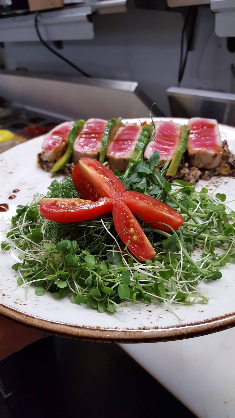 The food was really good and the staff were great. It has a casual ambiance. Great for lunch with family or a quieter dinner with someone special. The bar up stairs is a great surprise and a perfect spot to escape the day.