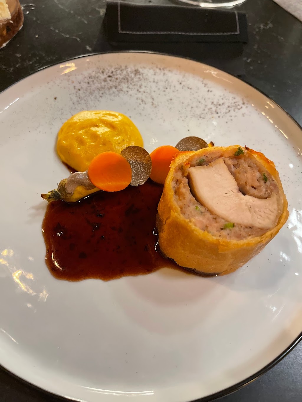 During a five-course meal with wine pairings at the chef's table, the intimate setting, with only three other couples, made it exceptional. The staff delivered impeccable five-star service. But the real highlight was the chef's mesmerizing performance crafting those culinary masterpieces. Each flavor explosion on the palate heightened the experience. The wine pairings were exquisite, and their Old Fashioned was delightful.