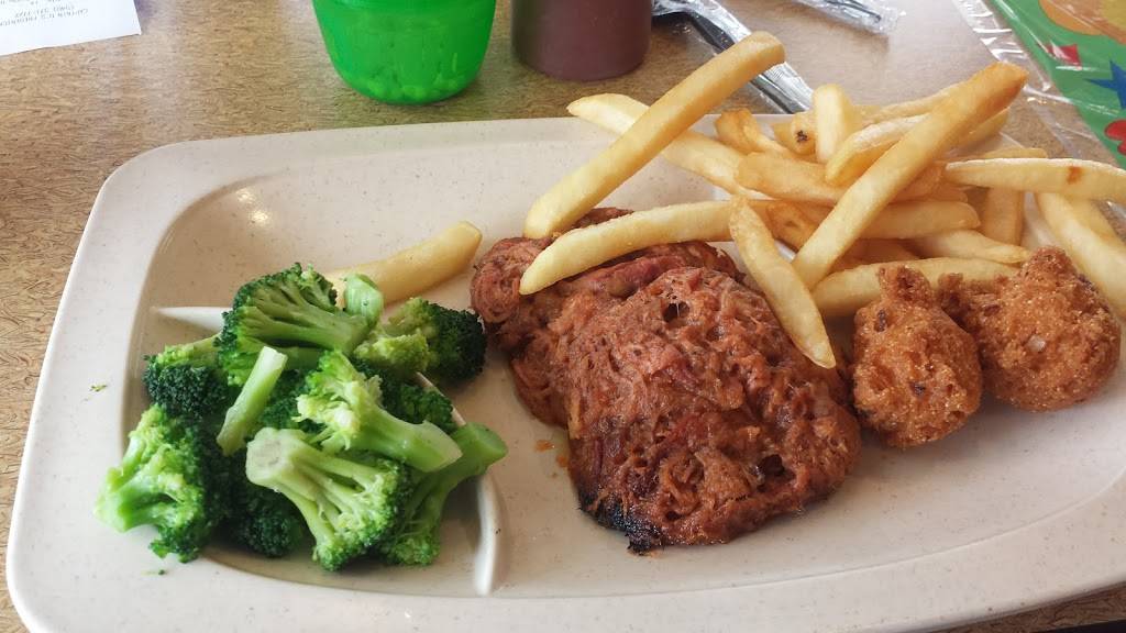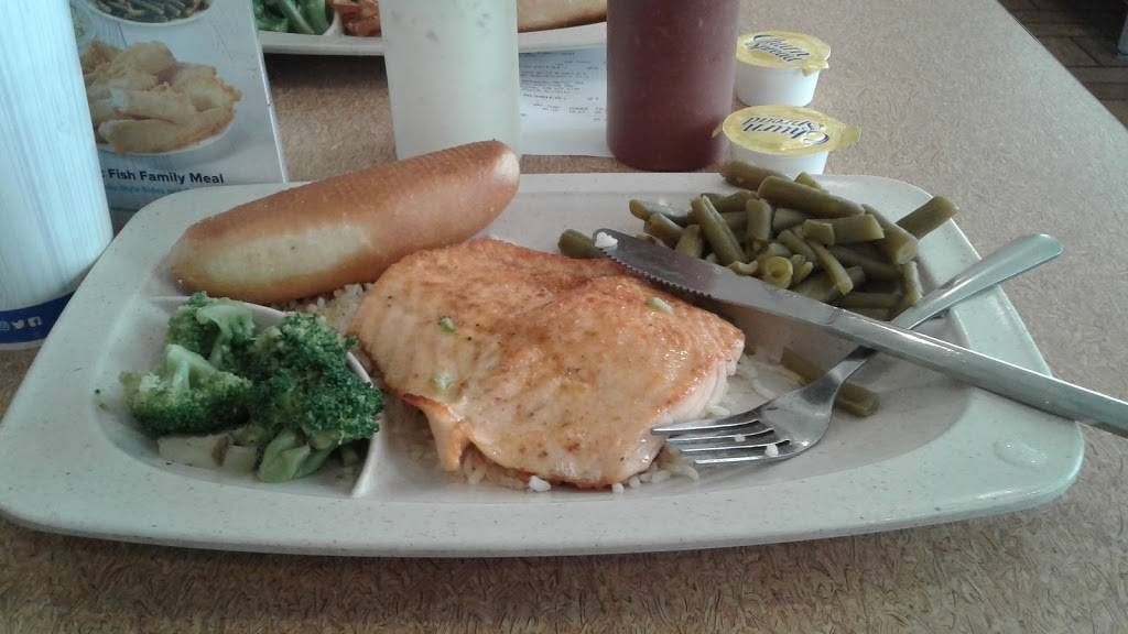 This is good fish dinners fast food. Mostly deep fried but there are choices for grilled. 2 Hush puppies, Cole slaw and fries with some fish, or chicken, makes a meal. Fast service, clean restaurant, friendly staff, parking lot, handicap ramp and good prices is a winner. Good for groups. Restrooms clean. Self service drinks. I should add there are veggie side choices. Also different fish choices. They have clams, oysters and lobster meals.