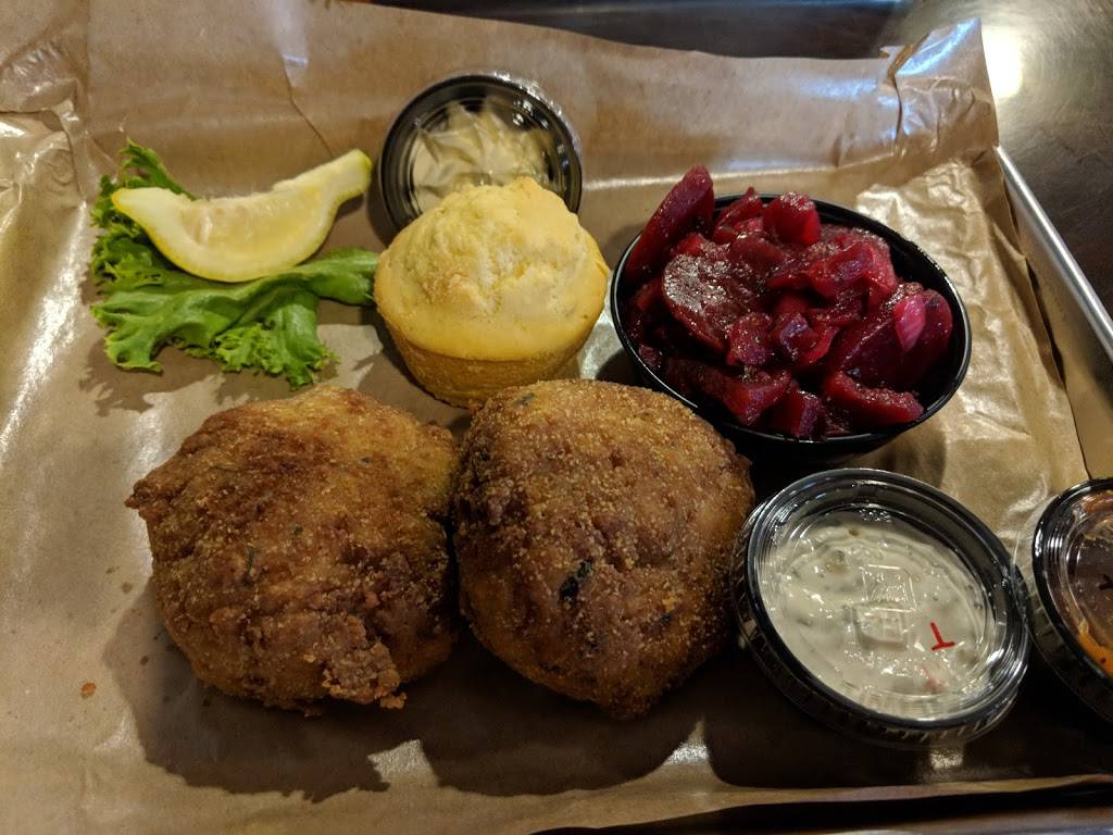 I thoroughly enjoyed dinner here with my family! the order I got was the seafood combo platter and it came with a crab cake, several shrimp, oysters and a side. I got the fried pickles and an order of tater salad. it also came with corn bread . even though most of the food was fried, there was very little oil! I'm not sure how they did it, but it was awesome! the crab cake is what sold me! Fresh and crisp with REAL crab meat! Atmosphere is excellent! I'm definitely taking the family back here! Very quaint and clean family atmosphere and the crowd was very nice.