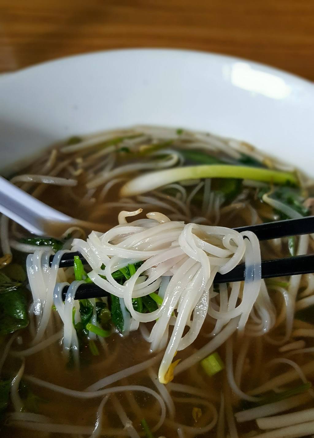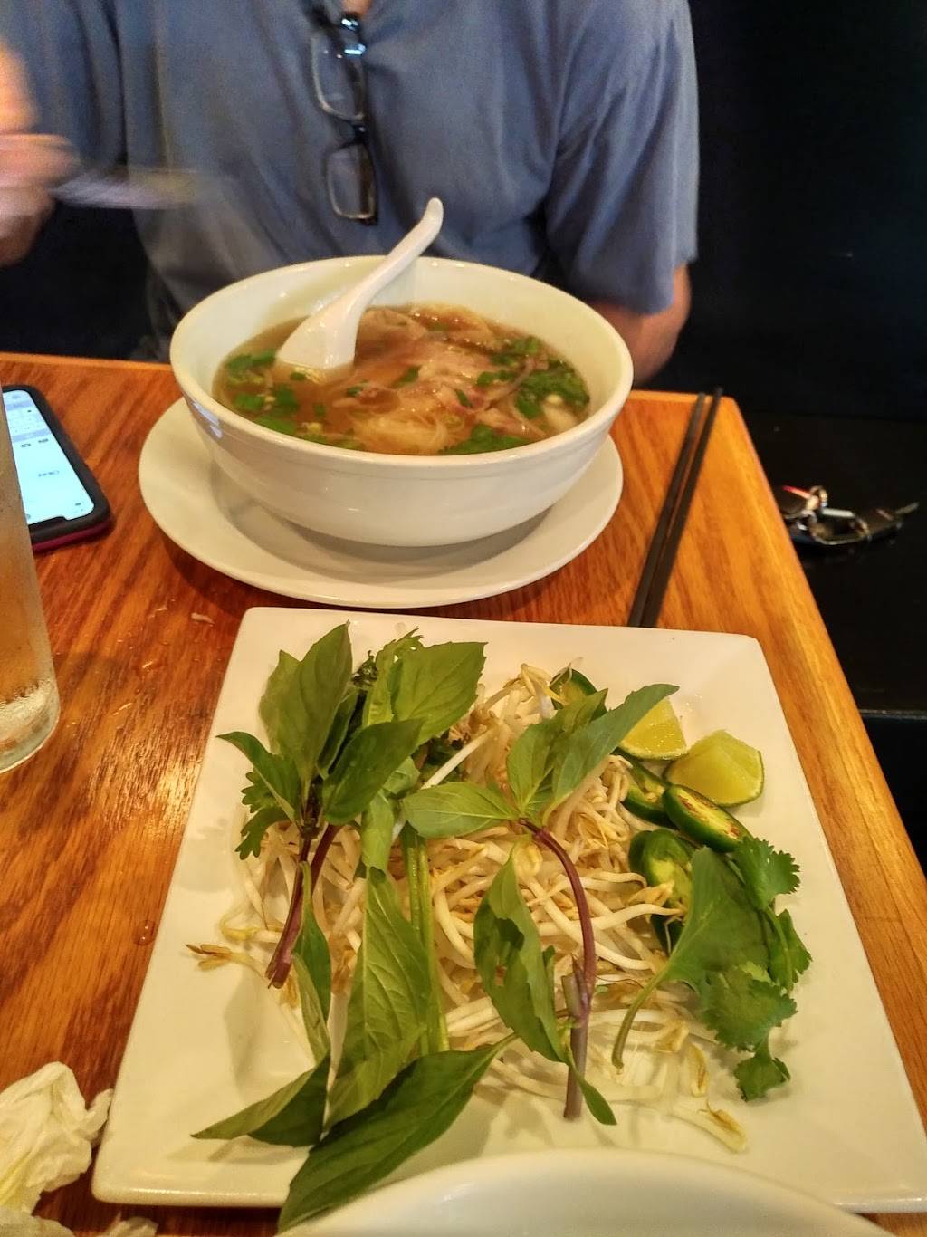 Good broth, noodles, and plenty of garnishment. I ordered ox tail pho. I prefer mine falling off the bone. Worth a visit. Good crowd for lunch. Draft beer.