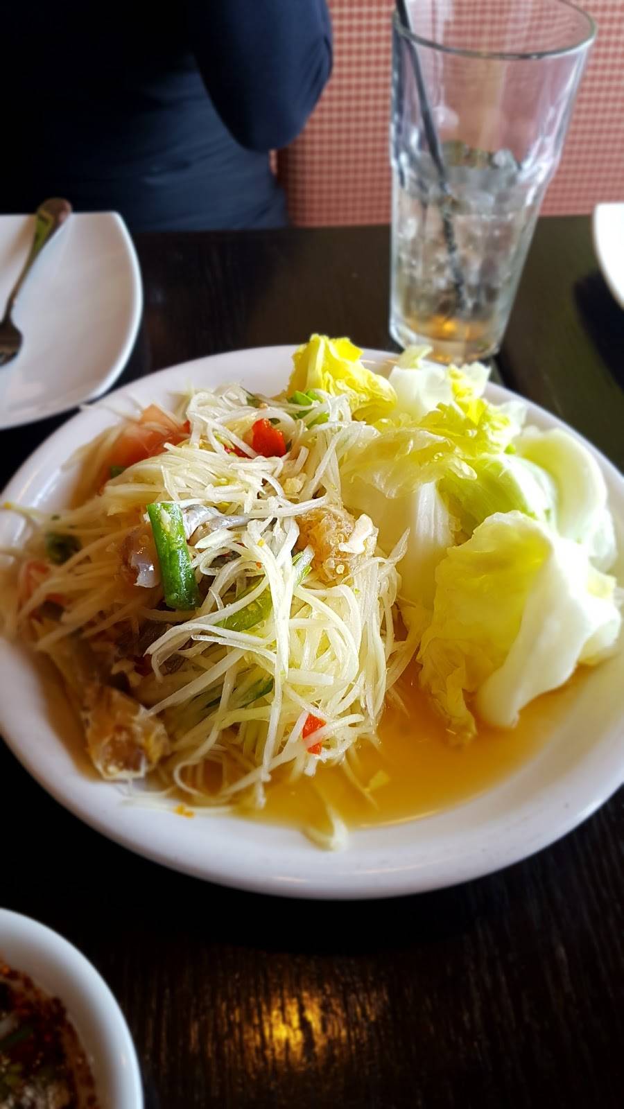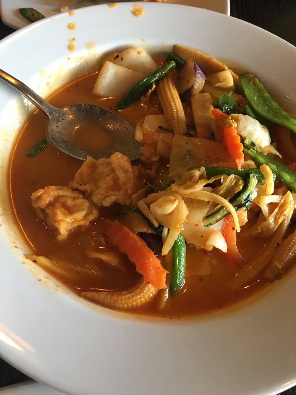 Good food and fast service a little pricey for Thai food but it was decent tasting I would recommend this place and great parking for sure. Wish the pork in the Chinese broccoli dish has pork chops strips instead of pieces of fat back..