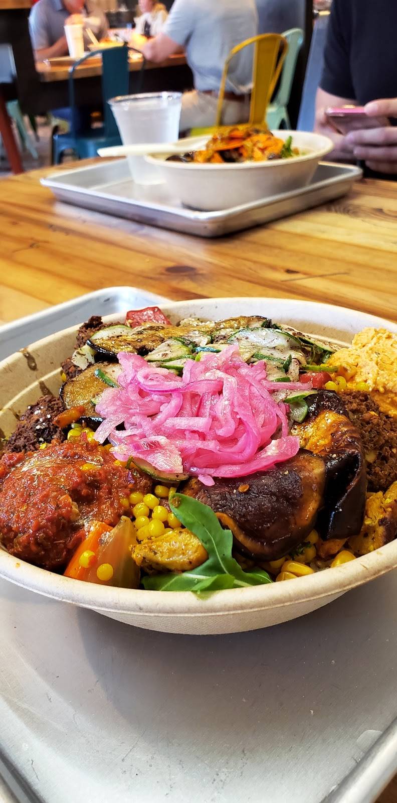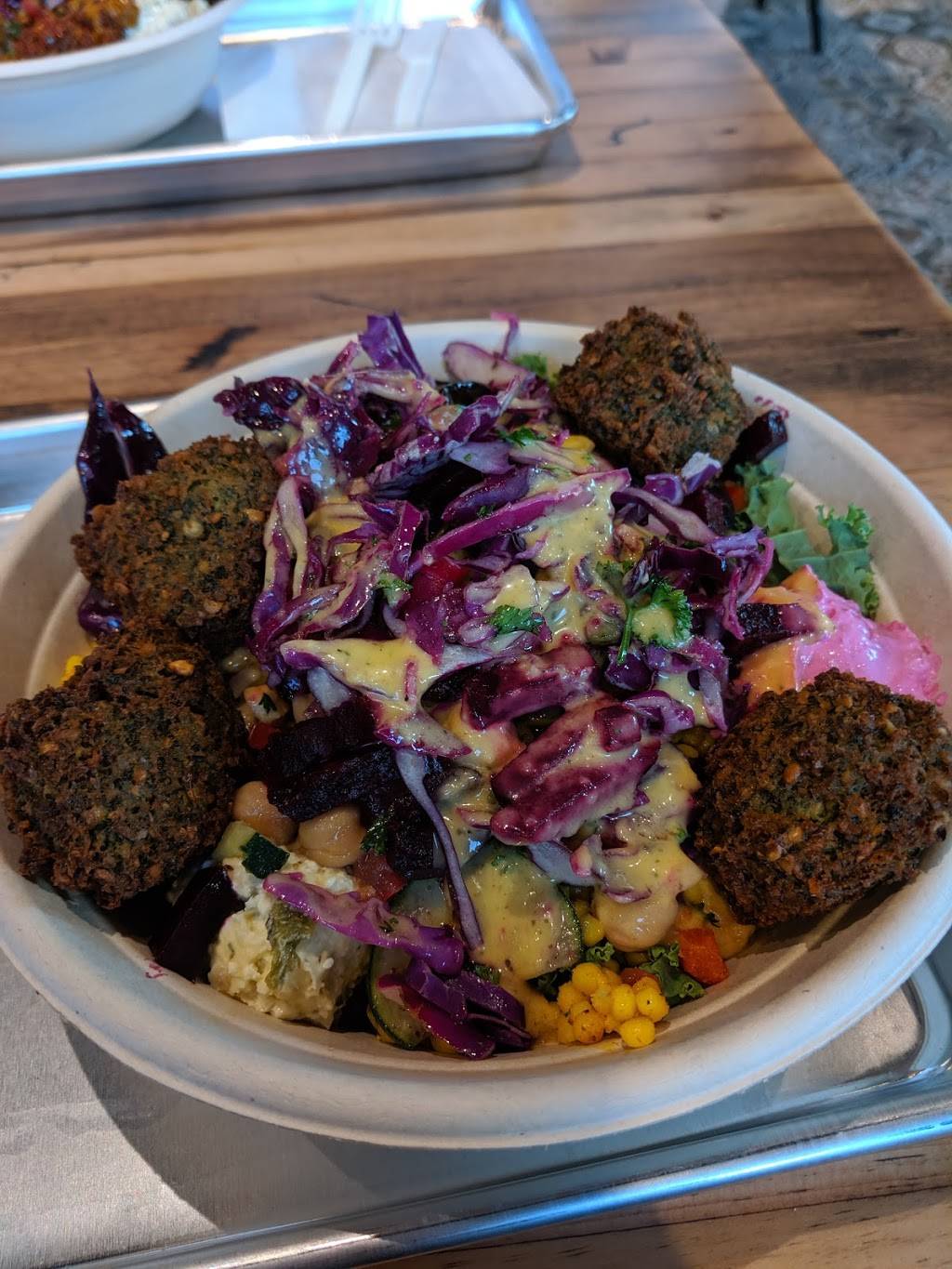 Had a great lunch there. Long lines but it moves quick enough. You pick either wrap, pits, or a bowl. The bowl comes in 2 size6. One has 4 toppings and the other unlimited. Pick a base, protein, add vegetables, and enjoy. Well priced, good quality, great falafel, and friendly staff.
