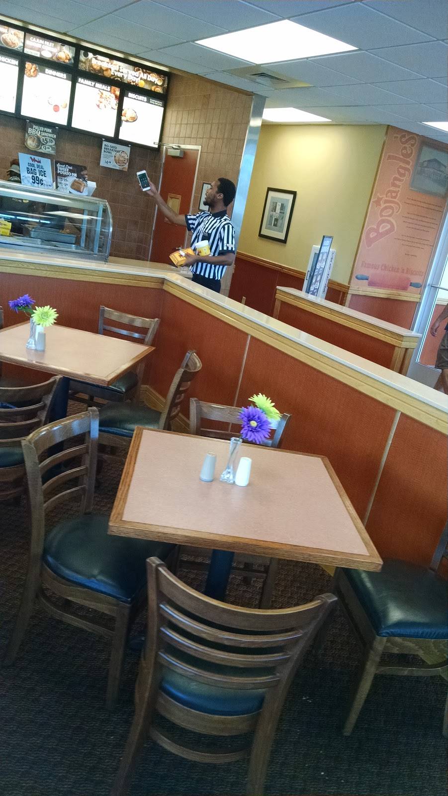 I helped to place a very large order for a company, and Bojangles was just perfect! Cheryl in the store was friendly, funny and right on top of it. They helped me move the food to my truck, and made sure it was secure for transport. When it was served, everything was hot and fresh, the group really really enjoyed their meal! Justina who took the order was knowledgeable and so sweet, she got us just what was needed! Thanks again!!