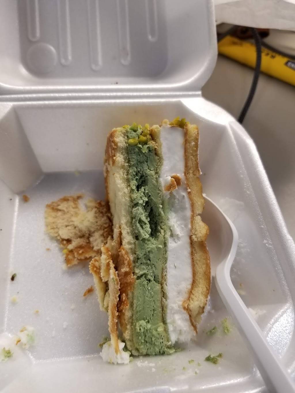 What dessert is this? I've had Limoncello Mousse Cake here and other places before and it definitely wasn't green with nuts on it. This was a take-out order so I didn't check until later. When I called, they insisted it was what I had ordered - my receipt says Limoncello - sigh....questioning if I want to return again.