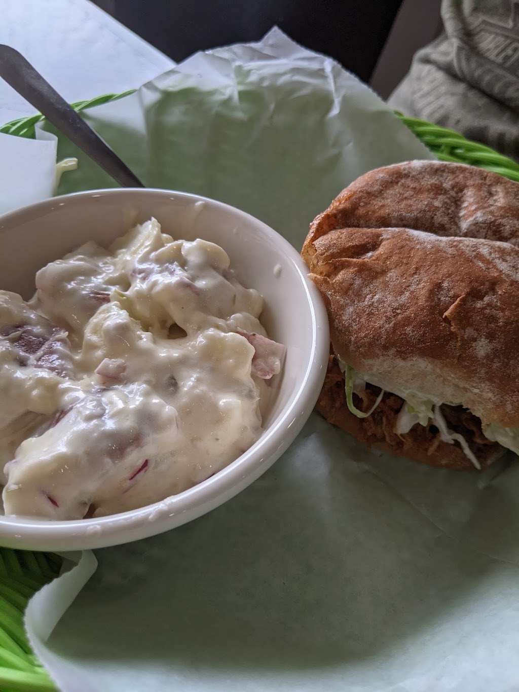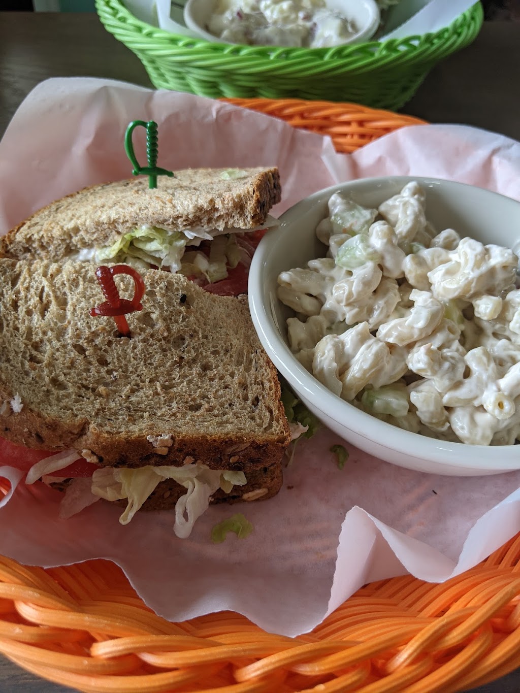 The "chicken" salad sandwich was even better than chicken salad I've had before going vegan. Pictured here is the crispy "chicken" sandwich and macaroni salad. While I was a bit disappointed that the sandwich was only a patty, I can't say enough about the macaroni salad!!