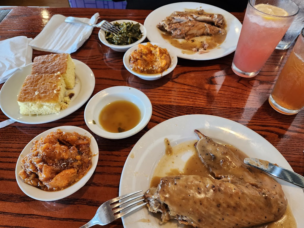We went here for Mothers Day, it was our first time. There was a man playing live jazz and some good songs too. The food came out hot. The cornbread was good and sweet. The collard greens were very good along with the Mac N Cheese. My husband enjoyed his fried turkey chops. I got the fried chicken, and it was season nicely. My nephew even had ribs, but they don't give you many, though. The sweet tea is also good here.