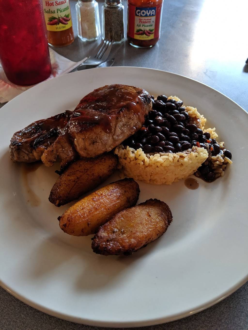 Staff was very friendly. Drinks and food was impeccable. We had fried plantains with a garlic sauce. Then we had salmon with guava sauce and a shrimp with garlic sauce. Both dishes were served with black beans and rice and a side of green beans. We also had coconut mojitos...just yum. We finished off this delicious meal with a flan. Reasonable and homemade. Going back for lunch tomorrow.