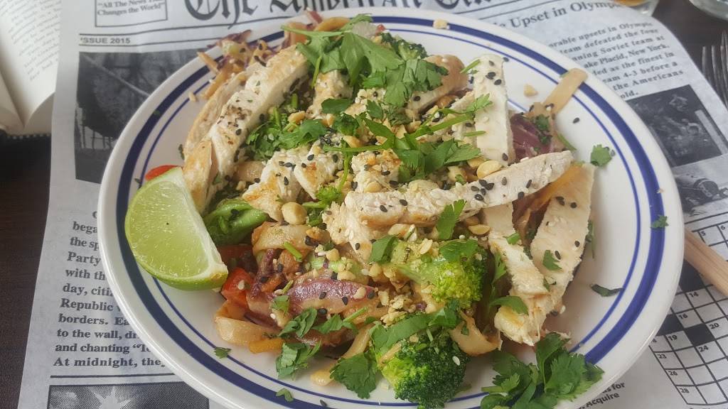 A shabby chic decor. A great Motown sound track played at a relaxing level. Excellent service and an expansive menu. We will go back.
