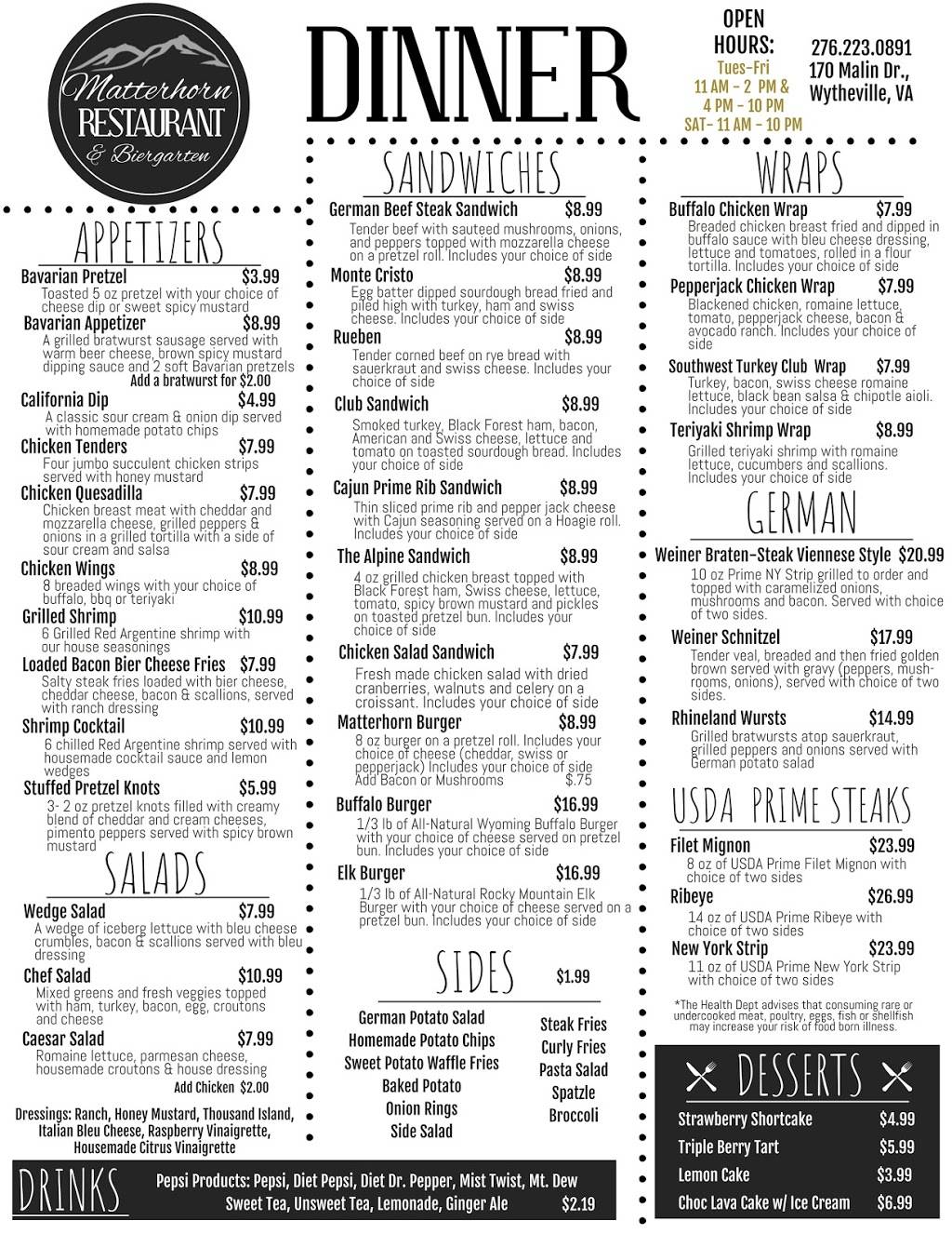 | Tuesday: | 11:00 AM – 2:00 PM, 4:00 – 10:00 PM |