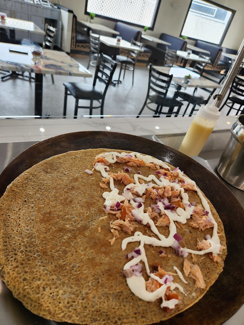 Ask them to make chunky guacamole! This place is amazing. It may seem like crepes and Mexican is a weird combo, but I promise it's not. Crepes are AMAZING. Mexican food is AMAZING. It's very hard to not order too much food.