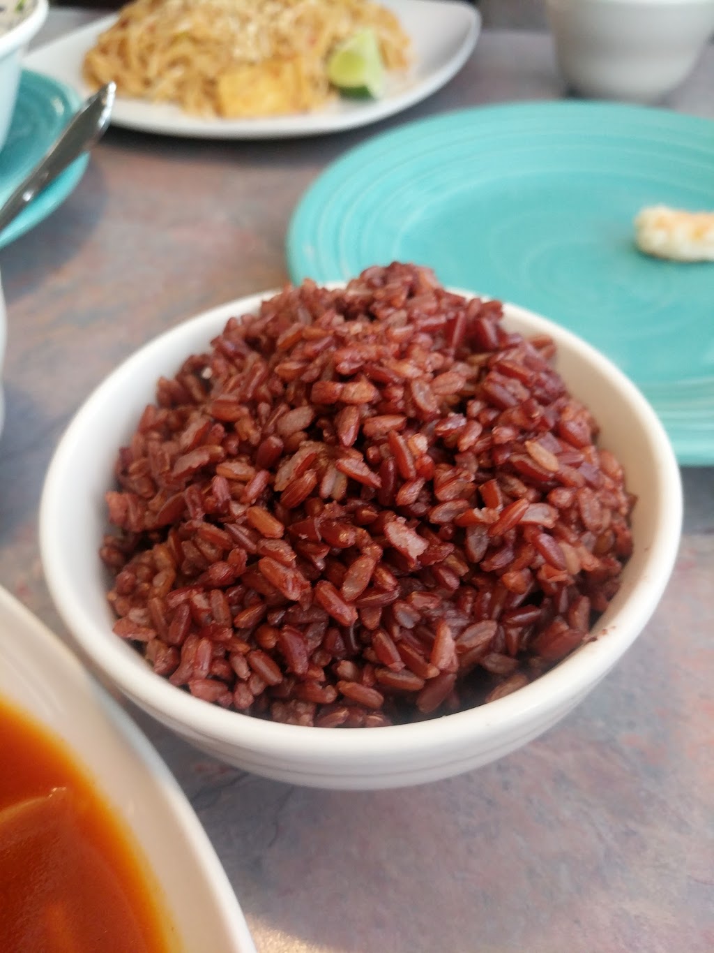 *We both had the Thai Basil dish (mine gluten free with veggies and brown rice and my husband's chicken and white rice). I asked for spicy (level 3) and my husband no spice. I found myself requesting more ground chili's from the back, it wasn't quite spicy enough, but I know that is better than over spiced. We also were both slightly disappointed in the flavor. I guess we expected something called "thai basil" to have a basil flavor. My husband was disappointed in the small amount of chicken on his dish. The dish was quite salty as well. The rice was delightful though.