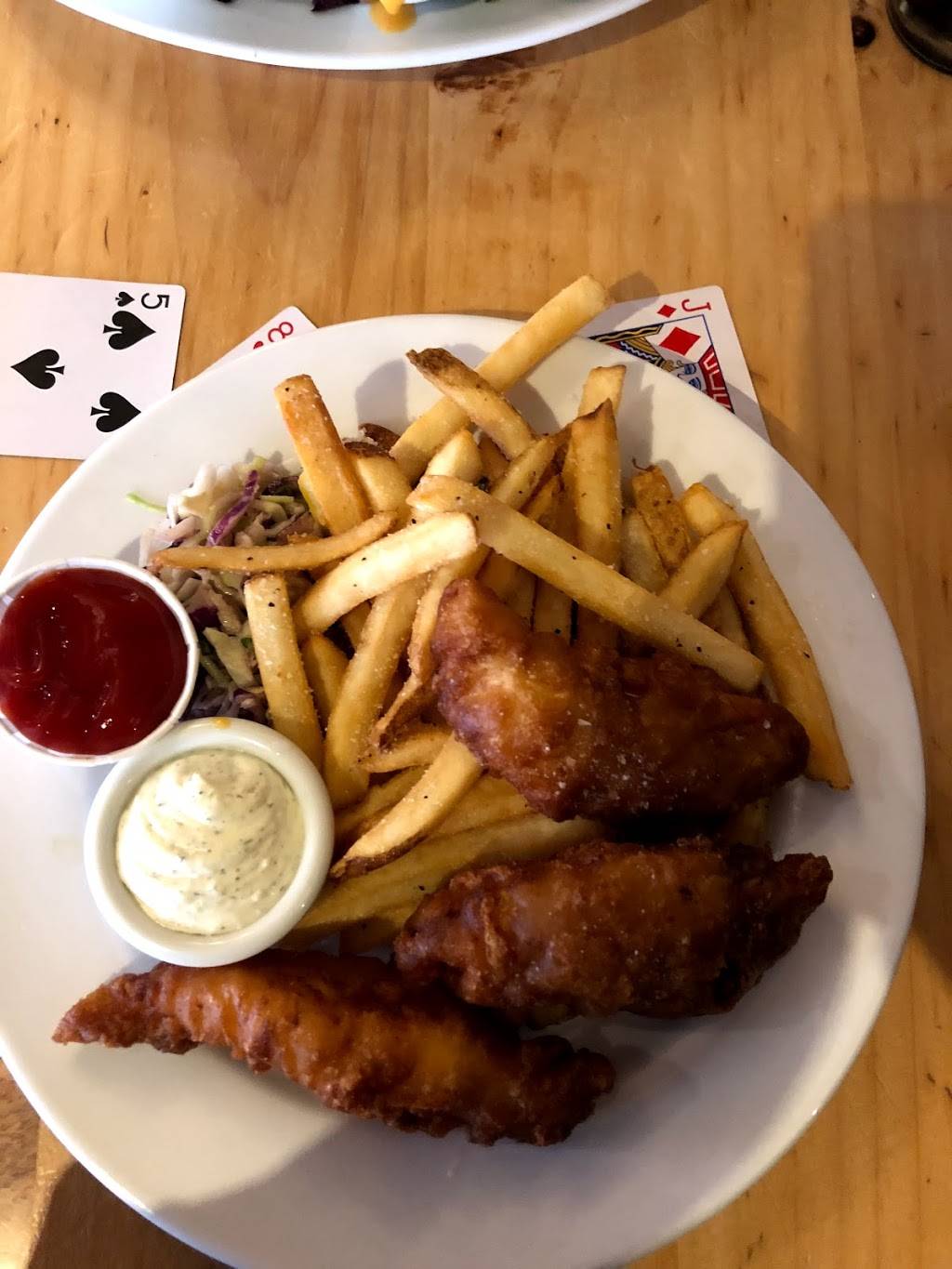 Delicious fish and chips. My husband normally doesn’t like cod or coleslaw and he loves both here! The fish was nice and crispy and not super oily, the fries were great and it tasted like they made their own tartar sauce which was delicious. And I know it’s a small detail but for serving finger food they have good napkins and they give you plenty.