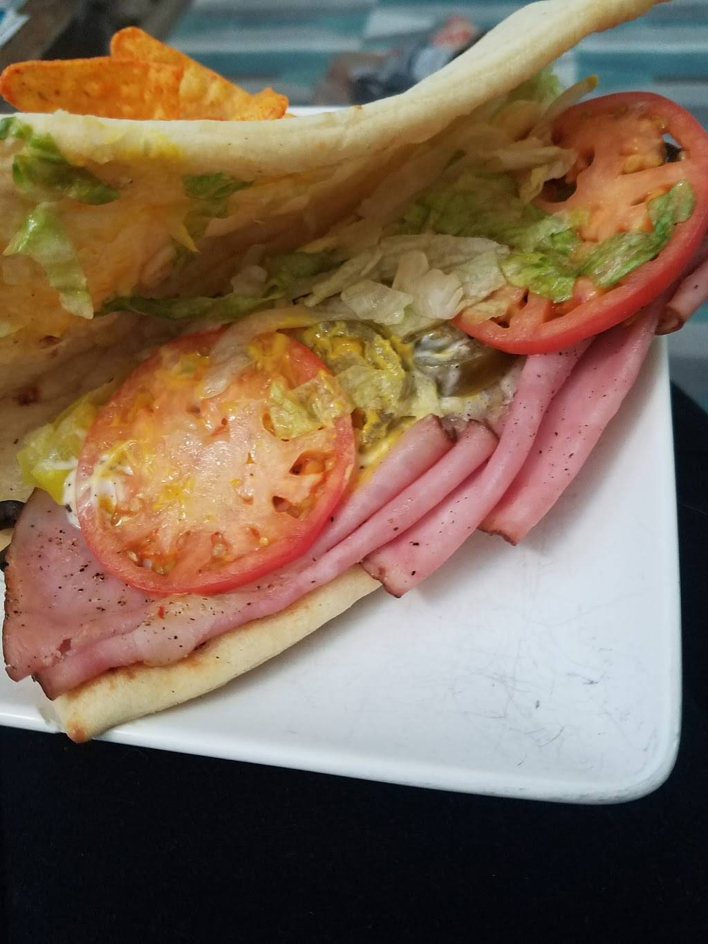 This is good food. You can choose your own healthy toppings and there are several choices of bread as well.
