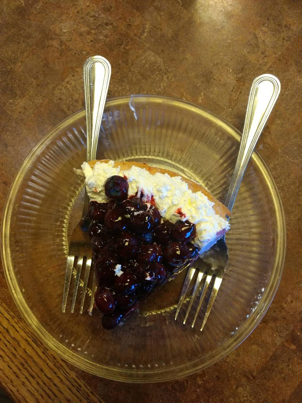 Decent food. Known for their pies. I liked the few bites of pie I stole from my husband. I was pleasantly surprised with how much was in the fish and chips basket. Generally speaking places like this like to skimp on this dish. Sharis filled the basket with chips (fries) and had 3 good sized fish. It was a really good portion size! I wasn’t able to finish. The meal came with lemon slices, tarter sauce, and coleslaw. I don’t like coleslaw usually, but I didn’t mind theirs. I guess because it didn’t have that traditional flavor... it was super bland. Just the way I like it. I gave it 4 stars instead of 5 because the ladies bathroom needed attention and when the waitress spilled water all over the table we had to ask for napkins to clean it up and my water glass had a huge gross smudge down the length of the glass, on the inside... Those kind of things are hardly any reason for me to not return for another meal. That kind of stuff could happen anywhere.