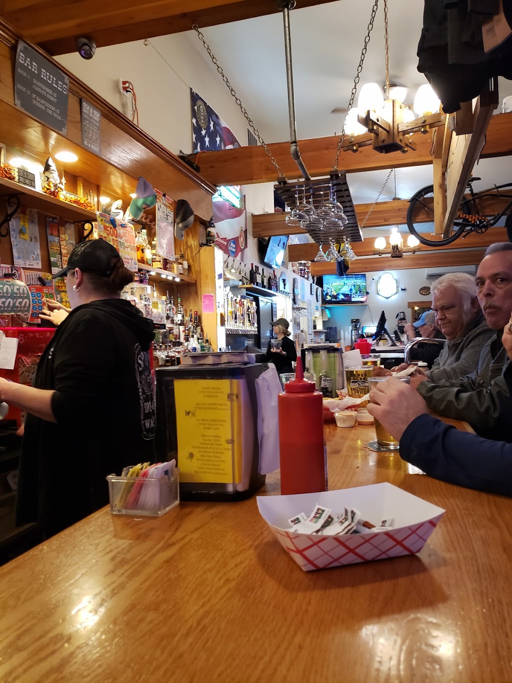 First time at Sporty's and it was definitely a place I'd go again. The music wasn't too loud which is typical of a bar so I loved that. My boyfriend got the spicy chicken with seasoned fries and I got the moosebreath burger with tots. I wish the burger was seasoned a bit more but otherwise it was all very delicious. The service was wonderful which always makes a visit to a new place even better. ♡