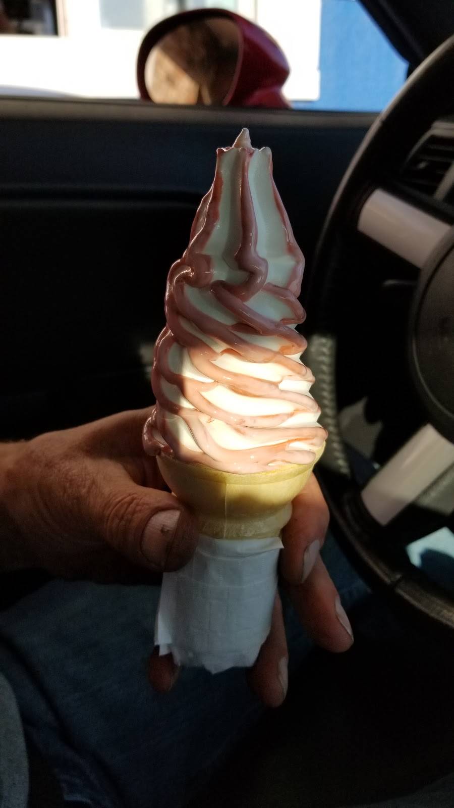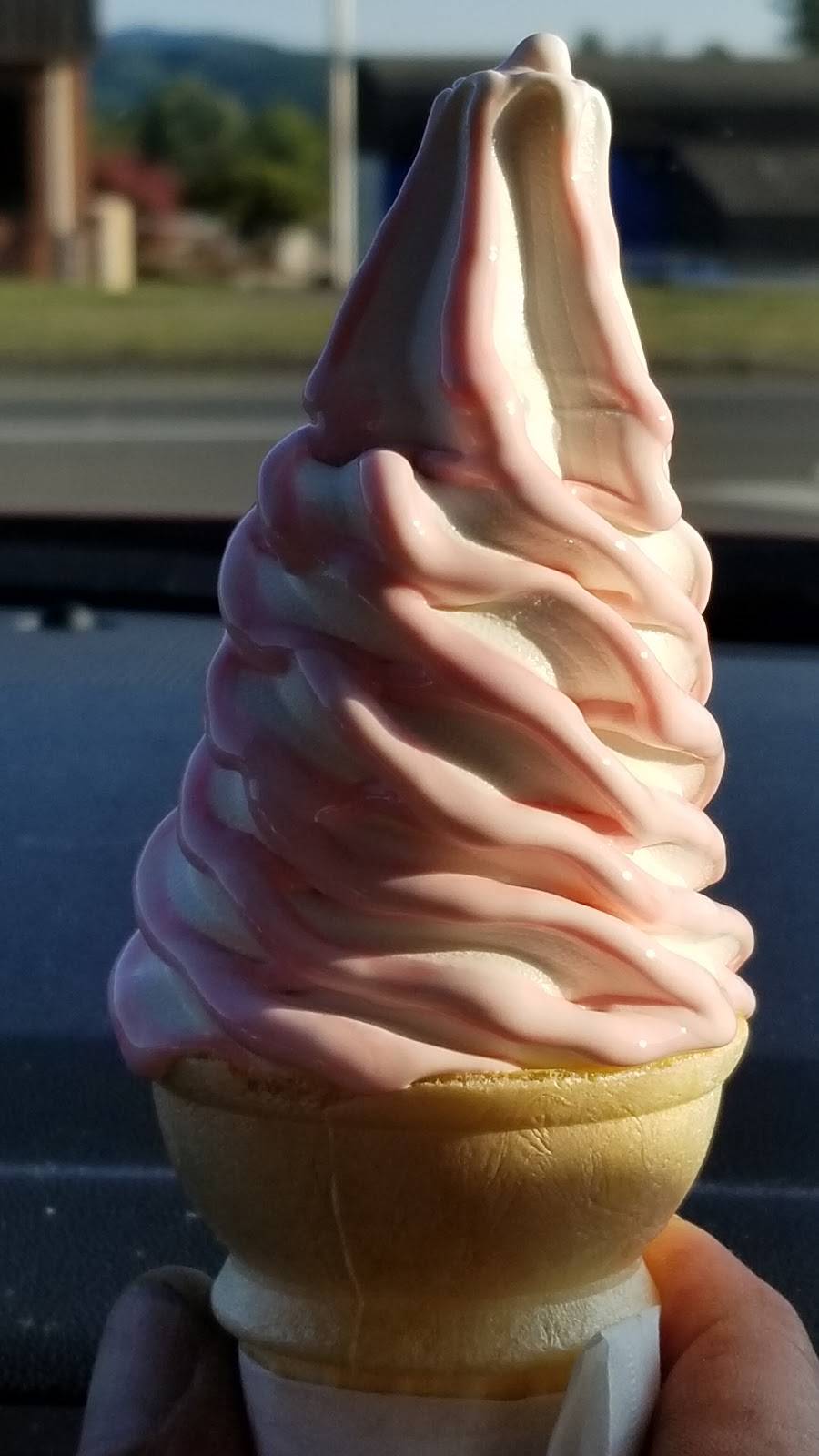 My husband and I love the ice cream cones at Eagle's Nest. They have a variety of flavors that are striped into the icecream. My favorite is bubblegum. My husband's is black cherry. They make them big. The pictured sizes are both child size and the price is right! They make good burgers and fries too!