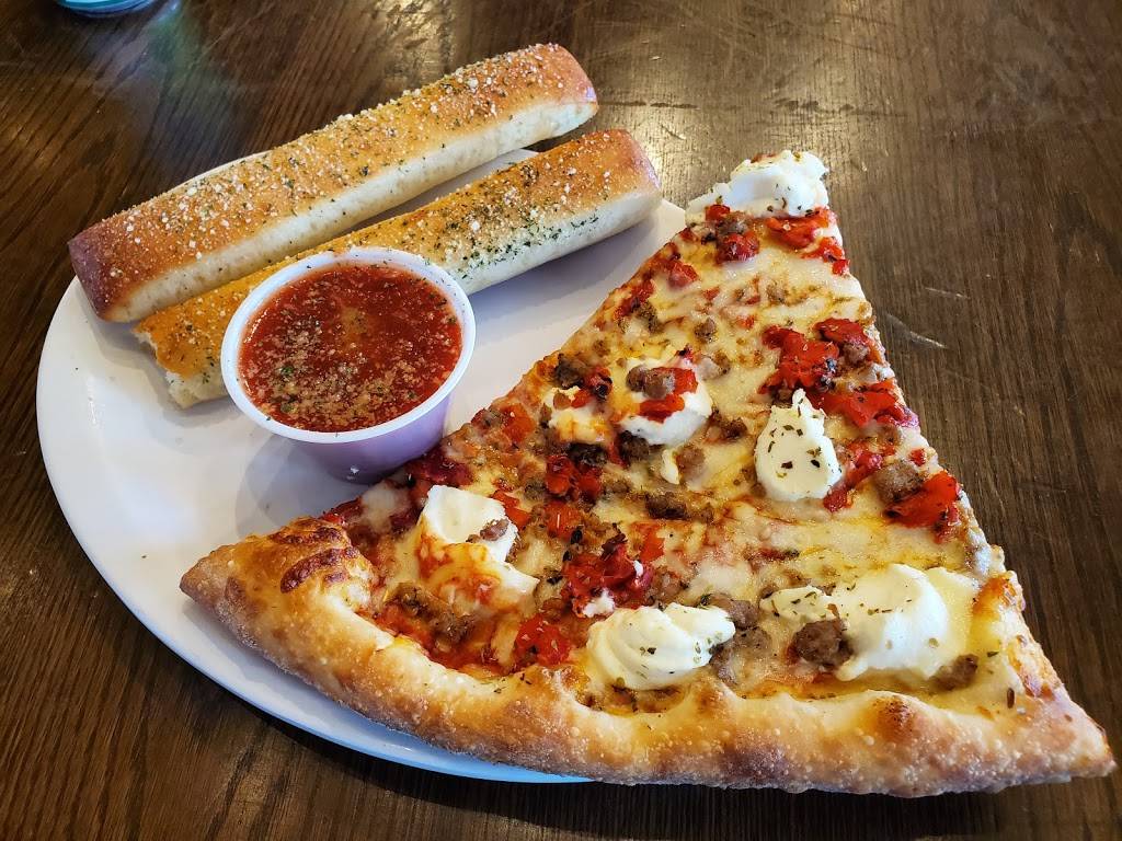 Happy hour with a beer and a slice! Best lunch deal ever and great pizza.